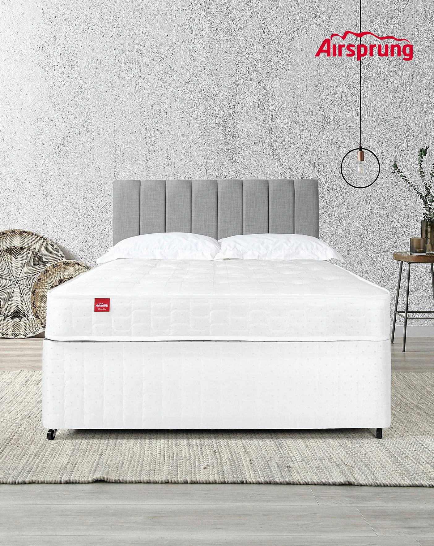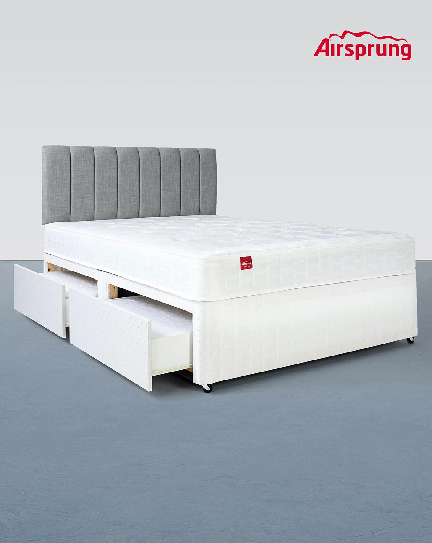 Introducing the Airsprung Sacramento Deep Quilt Divanset with 4 Drawers which has been made to perfectly match both the Mattress and Divan together. The Sacramento Deep Quilt mattress has been thoughtfully made by big brand Airsrpung in Wiltshire to create a comfy, medium feel mattress. Making the most of the layers of soft white fillings made from 80 percent recycled polyester, this mattress includes a Duraspring open coil core with a pure white damask sleeping surface as an added bonus. For peace of mind, we have made this mattress Hypoallergenic. For a simple and practical style, this option comes with 4 drawers. Set on single casters for manoeuvrability, it has never been simpler to move a Divanset around your room for when you want to switch up your space.