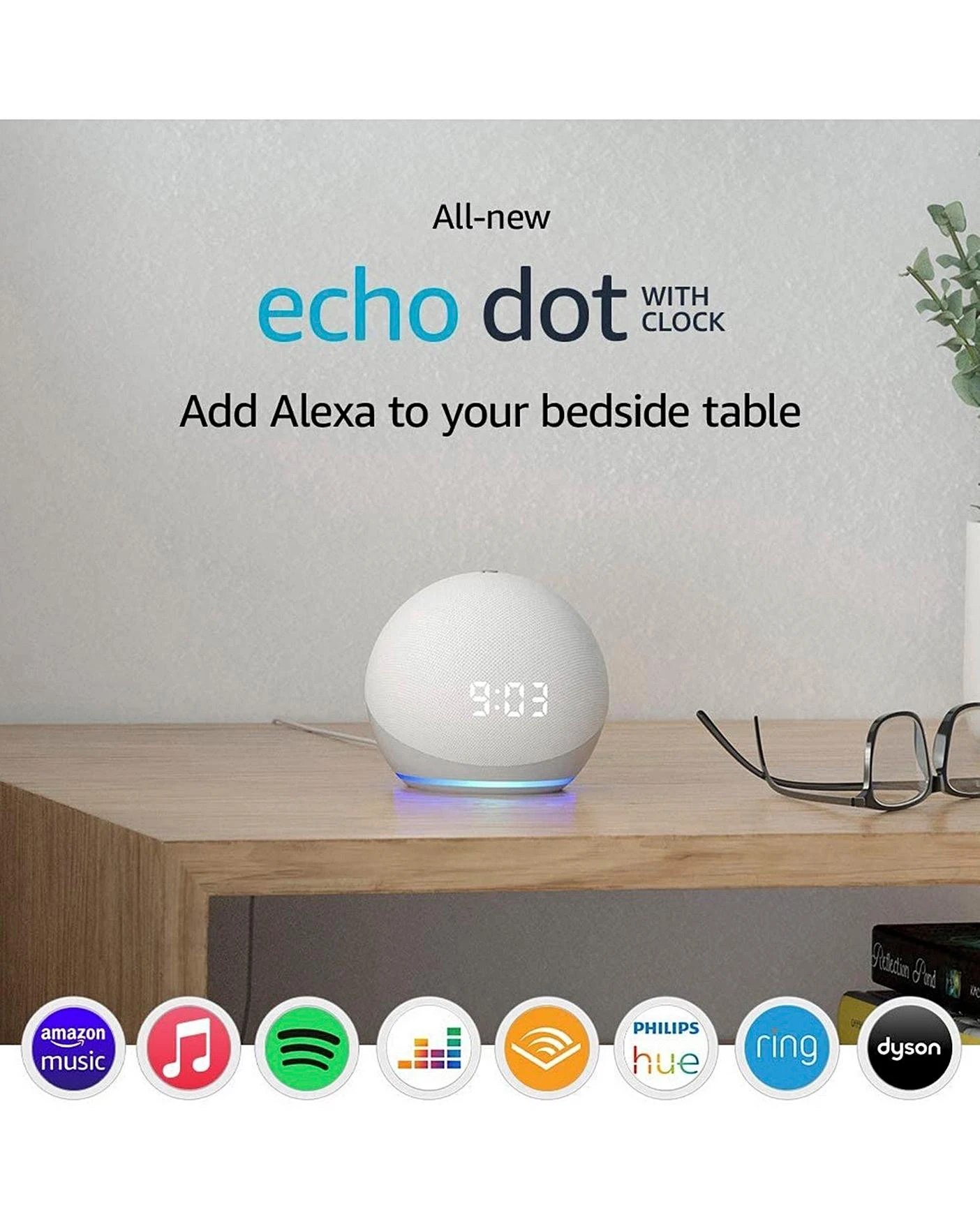 The 4th gen Amazon Echo Dot with Clock brings an updated look – rounded, sleek and compact – and is perfect your bedside table. See the time, alarms and timers on the easy-to-read LED display. An updated processor means Alexa responds to your commands and questions quicker than before. Stream music from services such as Amazon Music, Apple Music, Spotify, and Deezer and play them across all your compatible Echo speakers (sold separately) with multi-room music. Alexa makes it easy to organise your day and find the answers you want. You can set a timer, add to your shopping list, create a reminder, and ask questions. Stay updated with the latest news, weather and traffic. You’ll also have access to tens of thousands of Alexa skills, such as TV Guide or Fitbit. New to Alexa? It’s incredibly simple to setup and get started with the Alexa app. Set routines and manage your compatible smart home devices. Switch off the lights at bedtime, turn the thermostat up when you’re feeling a bit chilly, and change channels on your Fire TV. You can make calls to almost anyone hands-free making it easier than ever to stay in touch with friends and family.