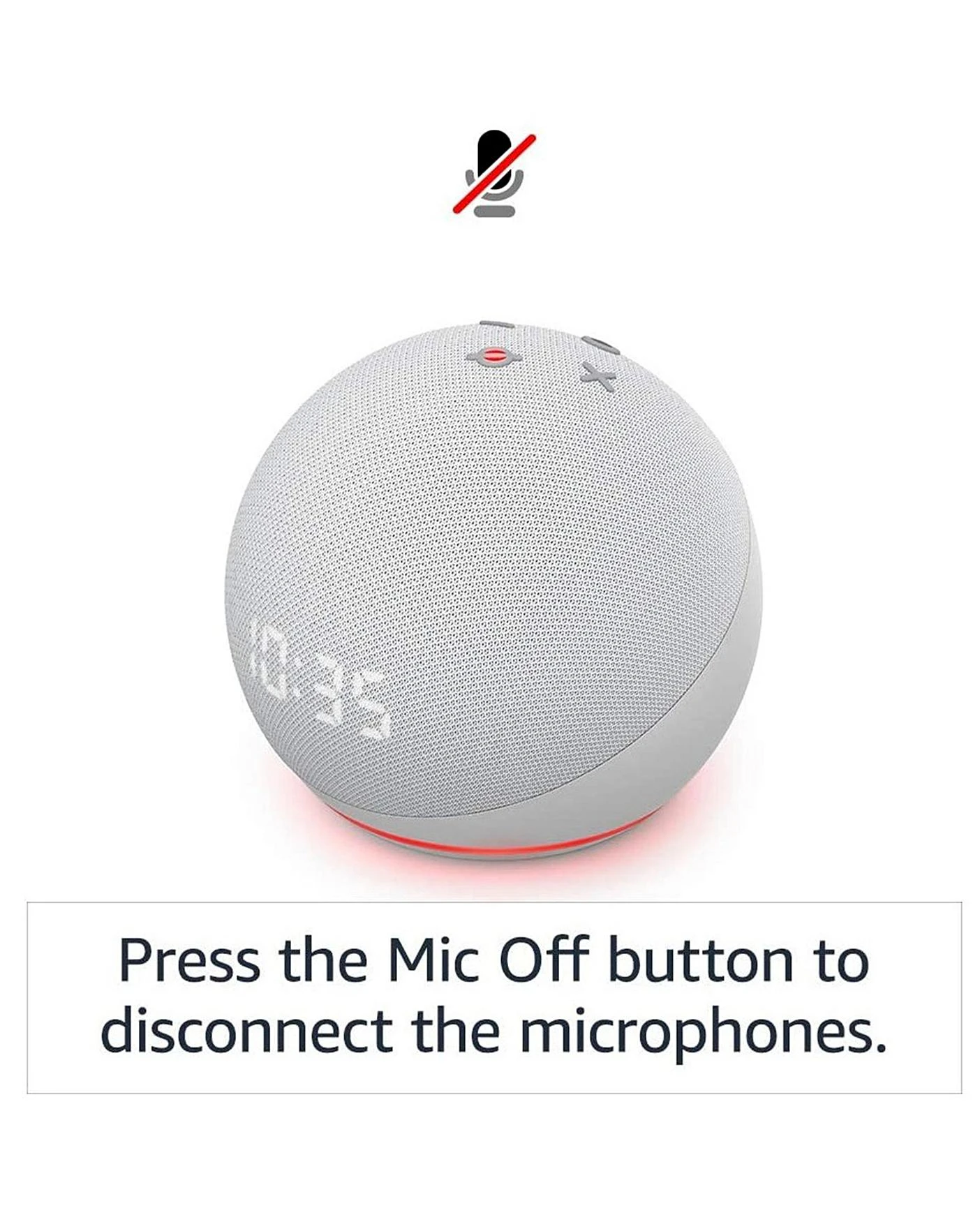 In the box: Amazon Echo Dot (4th Gen) Smart Speaker & Clock, Power adapter, Quick start guide.