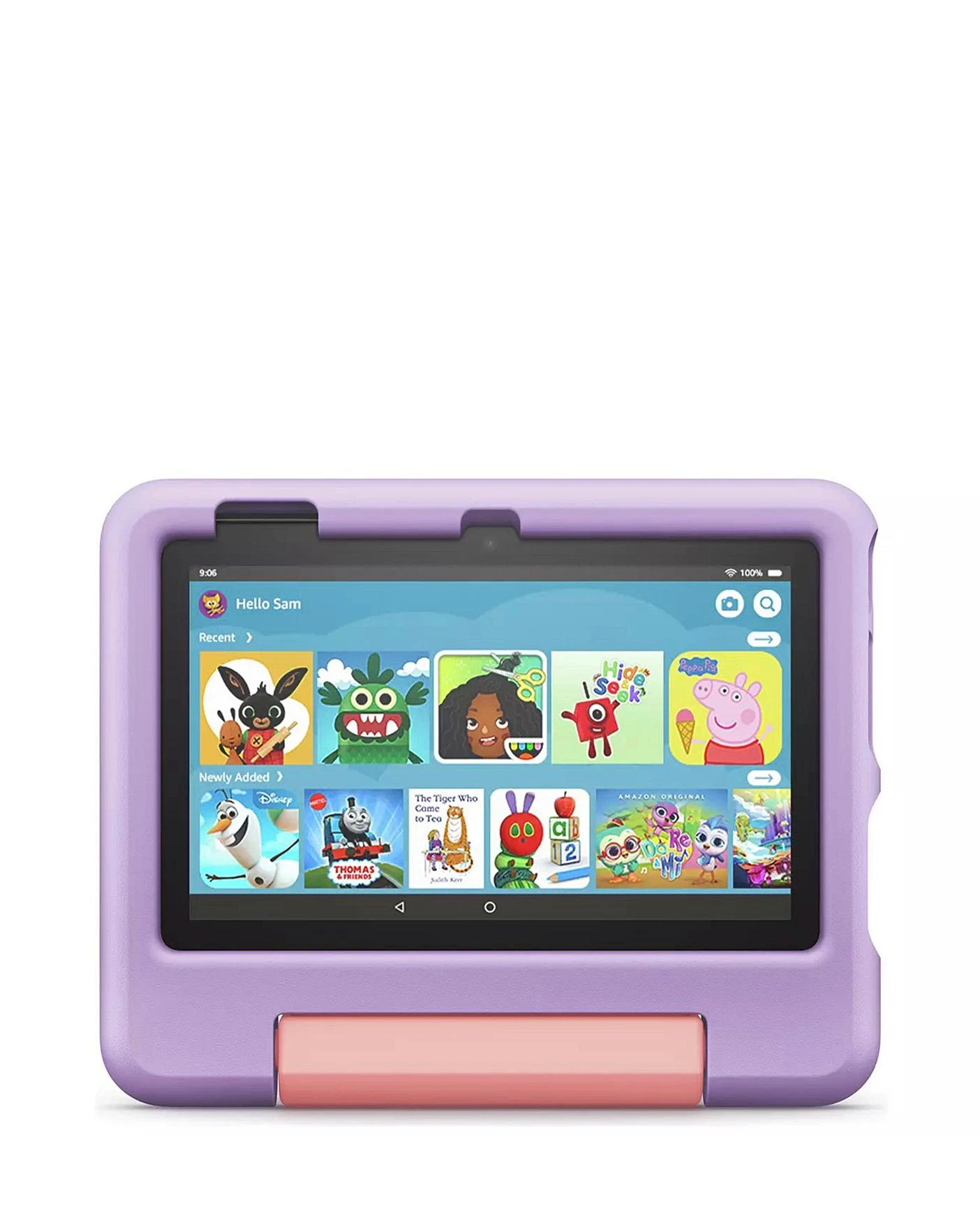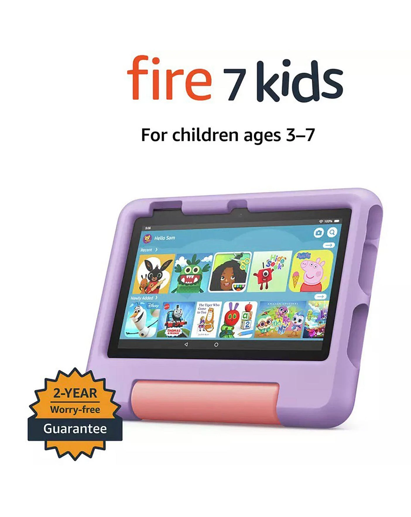 Includes a full-featured Fire 7inch tablet (not a toy) for ages 3-7, a Kid-Proof Case with built-in stand, 1 year of Amazon Kids+ and 2-year worry-free guarantee. Easy-to-use Parent Dashboard allows you to filter content based on child’s age, set educational goals and time limits, and grant access to additional content from Netflix, Disney+ and Zoom. Increased battery life (up to 10 hours of mixed use) and enhanced performance – up to 30% faster quad-core processor and twice as much RAM (2 GB) versus previous generation. 1 year of Amazon Kids+ content, including thousands of apps, games, books, videos and favourites such as, CBeebies, Disney, Nick and more (excludes Ireland customers).