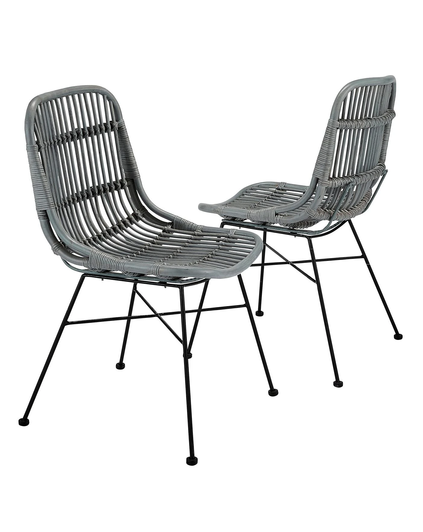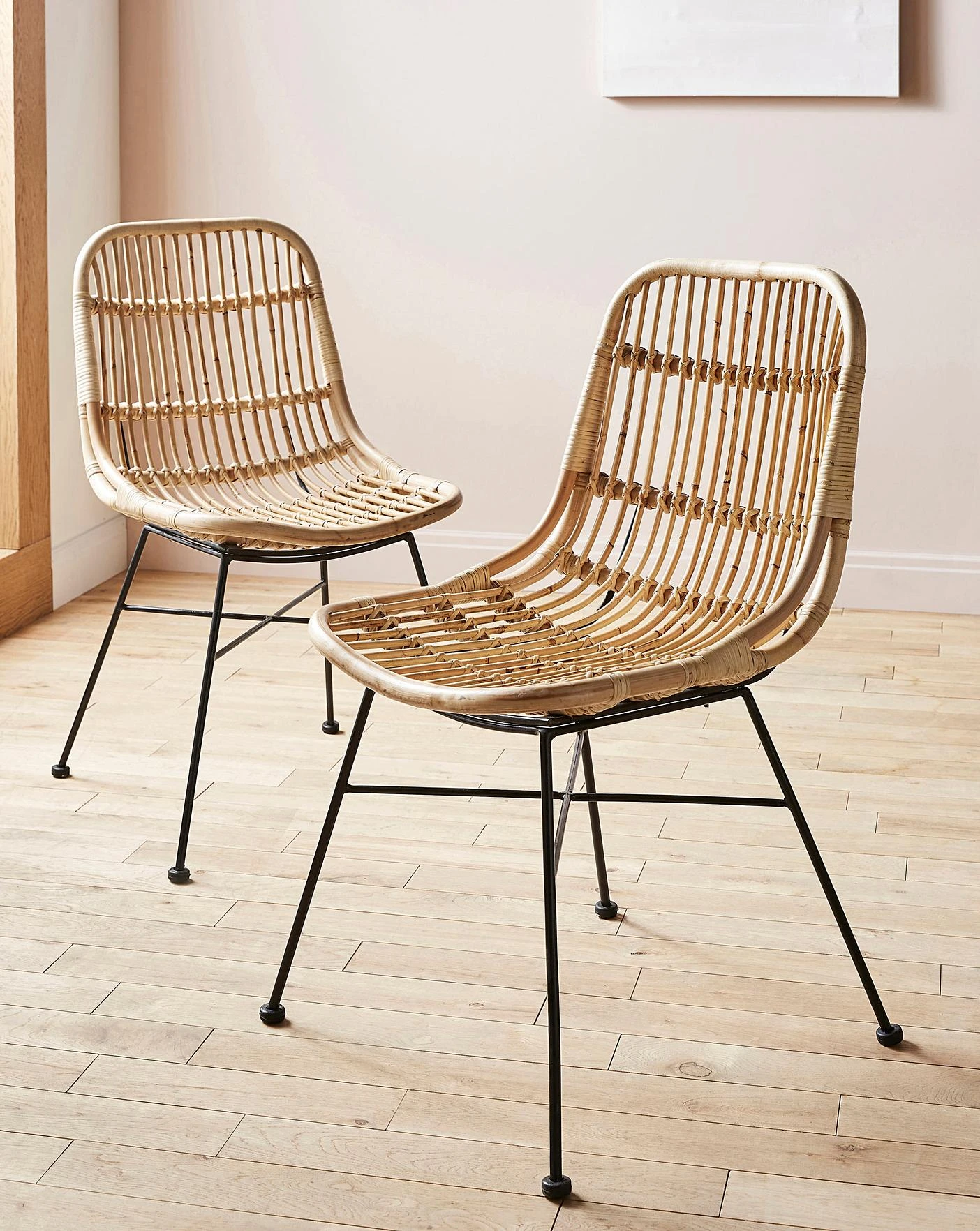 The Aurora Pair of Rattan Dining Chairs, with its natural tones and plenty of texture will give your dining space the perfect seasonal update and add a natural aesthetic. The classic colours will match all interiors, adding a boho-chic look and making it is a timeless addition to any room. Featuring slim black metal legs for a modern touch.