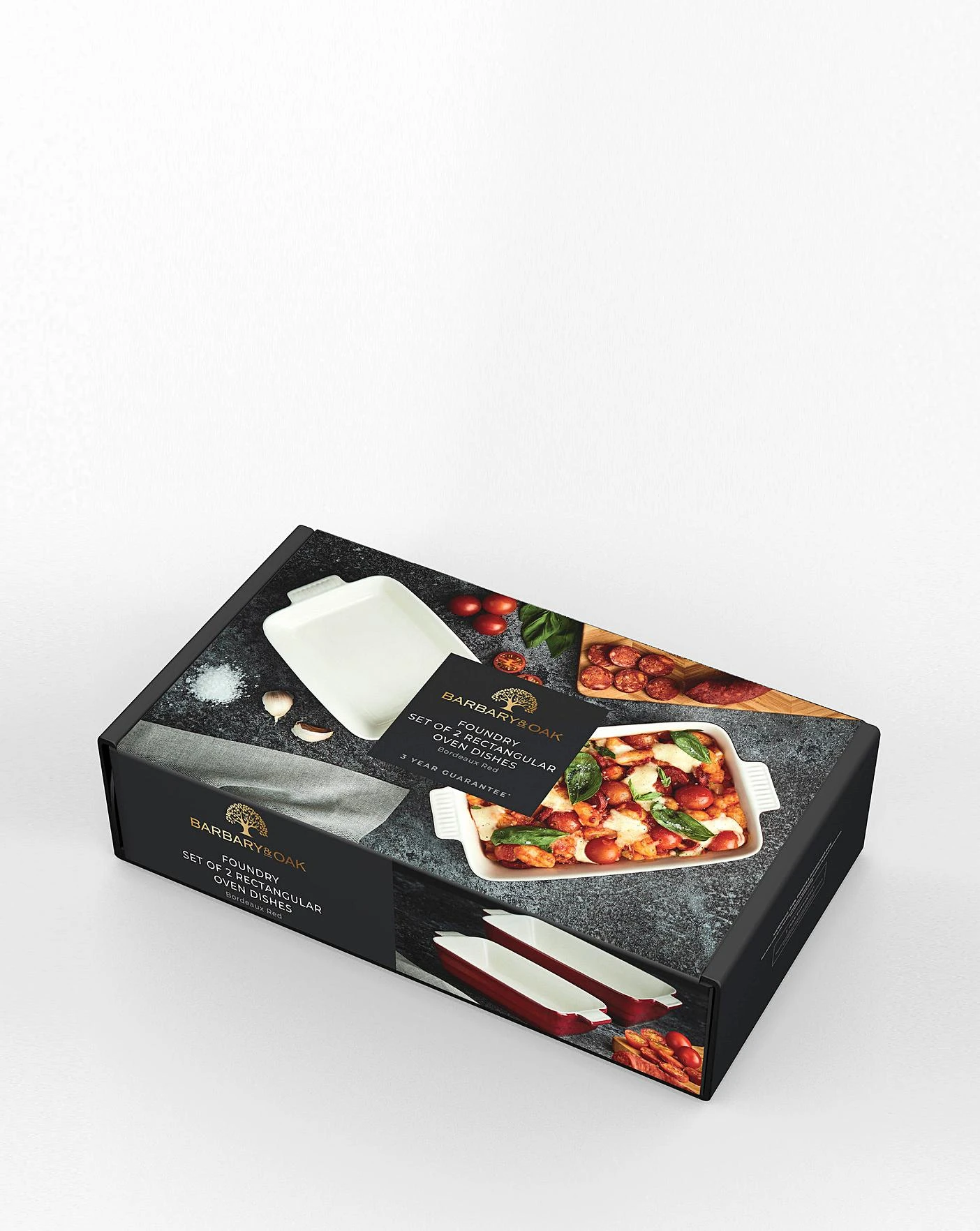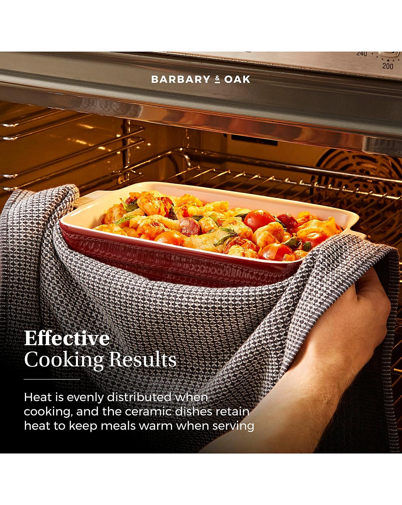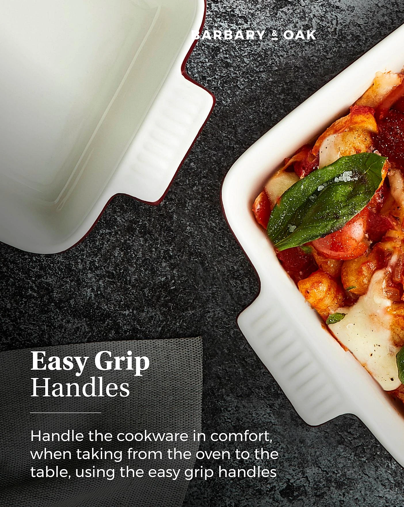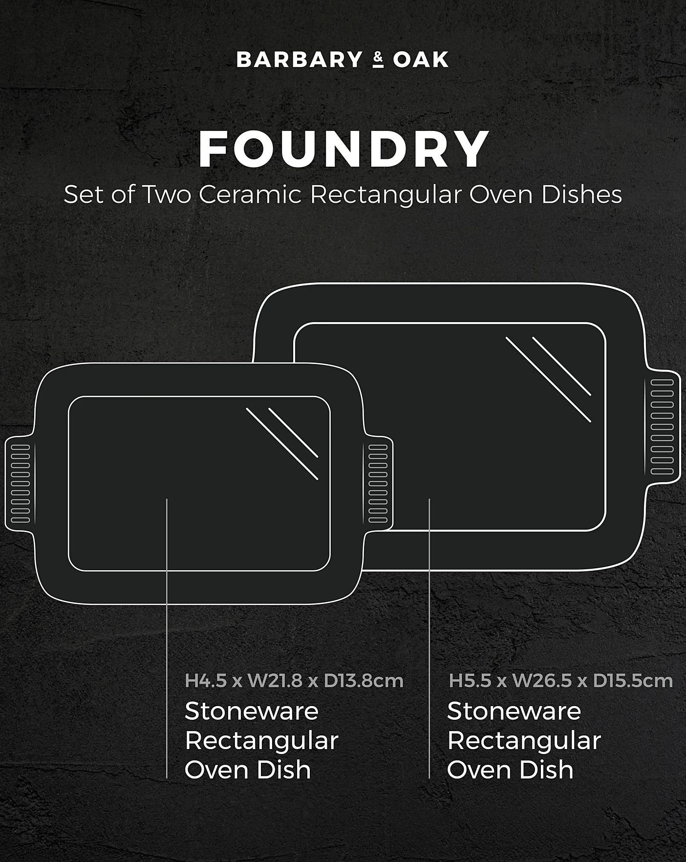 From roasted vegetables to baked goods, the set of two ceramic oven dishes from Towers Barbary & Oak are an absolute necessity for everyday cooking. Complete with 1 large and 1 small oven dish, they are crafted from durable stoneware thats resistant to chipping and cracking for long-lasting use whilst withstanding high temperatures in the microwave and up to 220 degrees celsius in the oven. With a glazed coated interior, it prevents food from sticking to the dishes, which allows for an easier clean after meal times.The robust ceramic dishes evenly distribute heat for thoroughly cooked recipes whilst retaining heat to keep meals warm. 3 YEARS GUARANTEE: Assured Tower quality with a standard 1 year guarantee, with a 2 year extension subject to product registration.