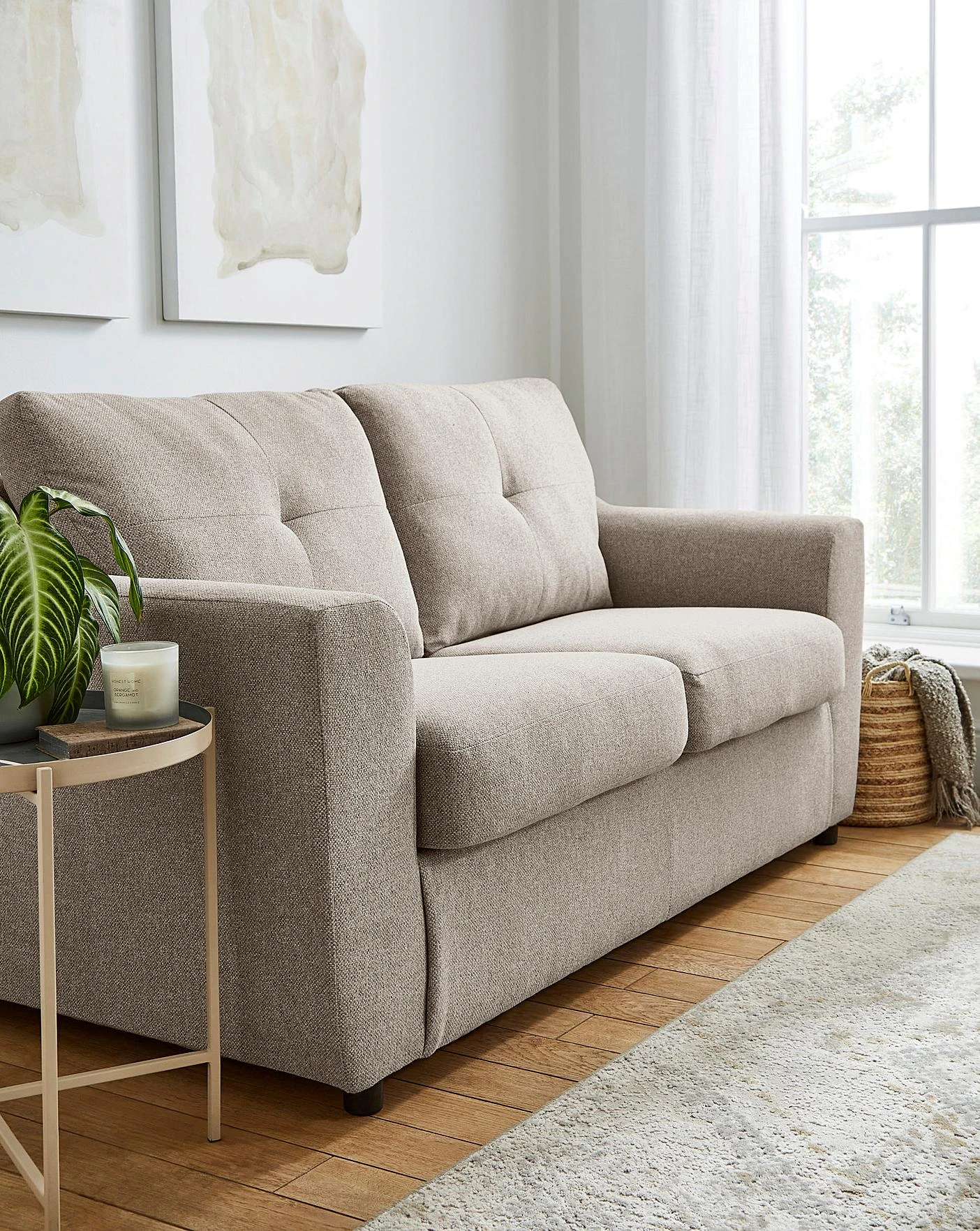The contemporary style of the Baxter range is both on-trend and a classic. The Deep button back cushion complements the plain bordering. Providing a minimalist shape, this Baxter Sofa bed pulls out into a double bed. Composed of a 100% polyester woven textured fabric with fibre foam seating.