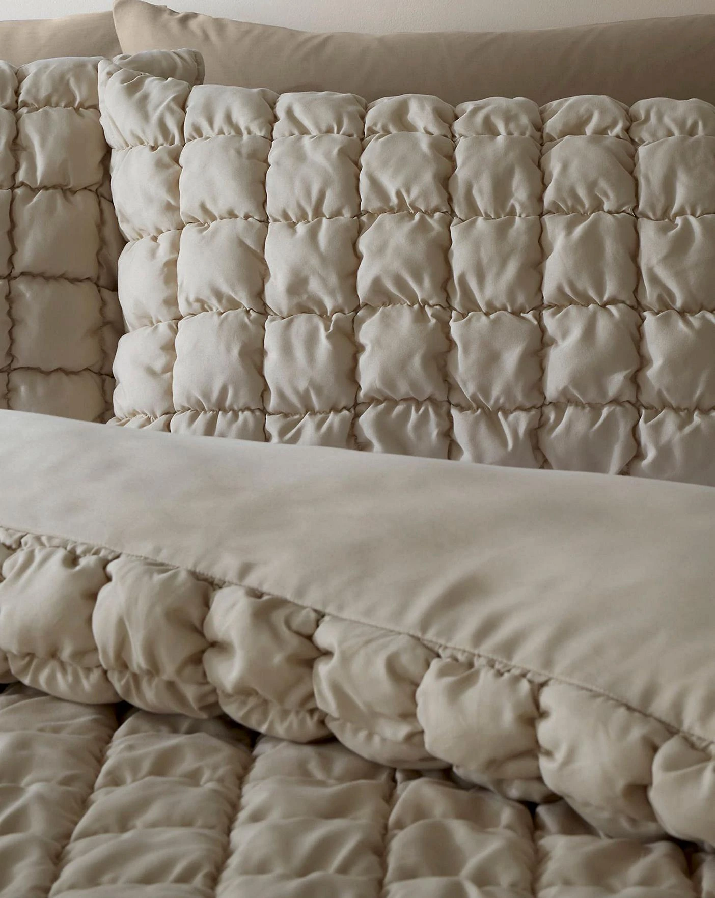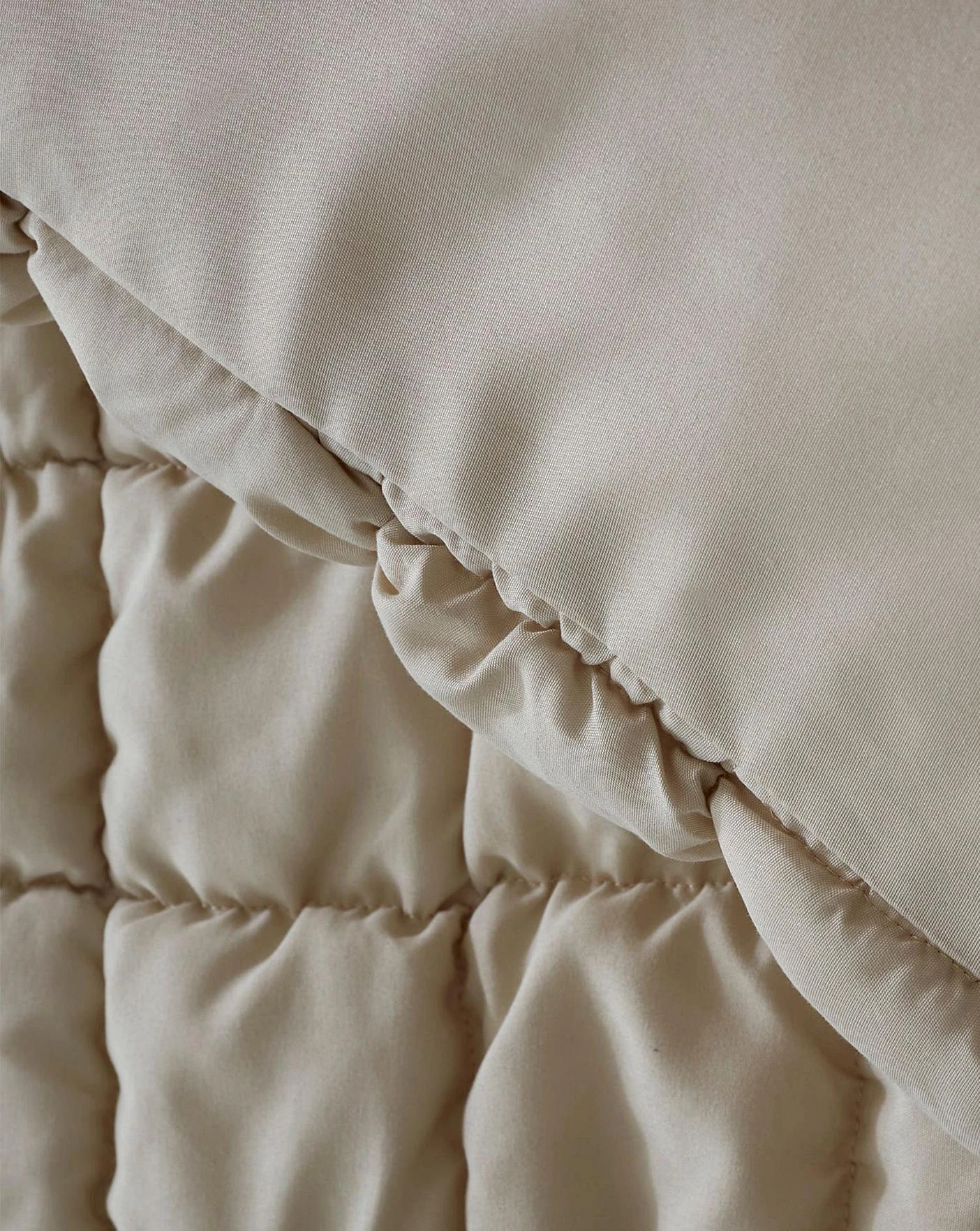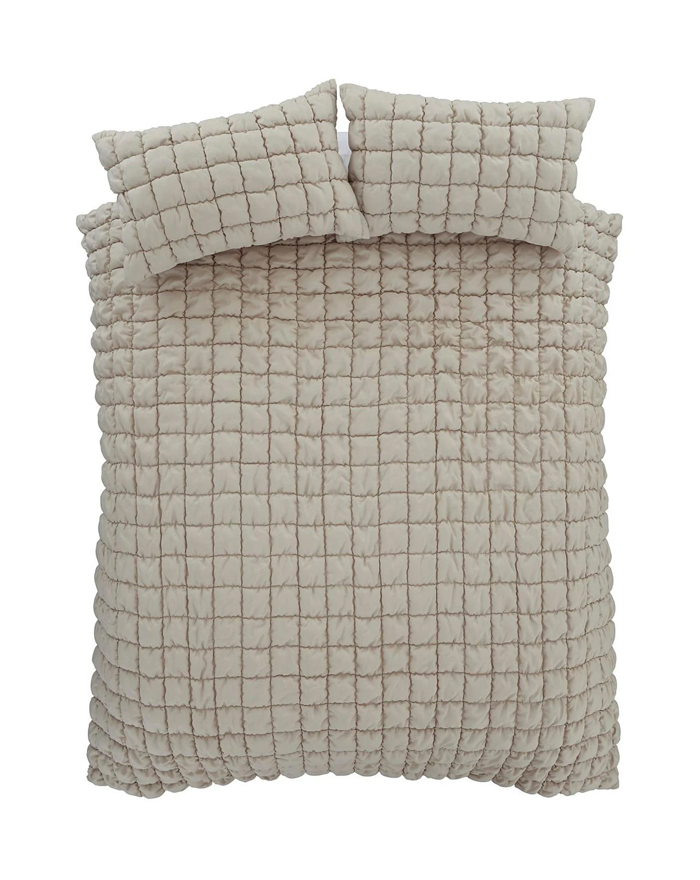 This square 3.5 tog quilted pattern texture adds a touch of contemporary look to your bedroom decor. The reverse is a soft touch co-ordinating natural colour, providing a comfortable contrast to the bold front design. Catherine Lansfield is renowned for style and quality – designed and developed in Great Britain.