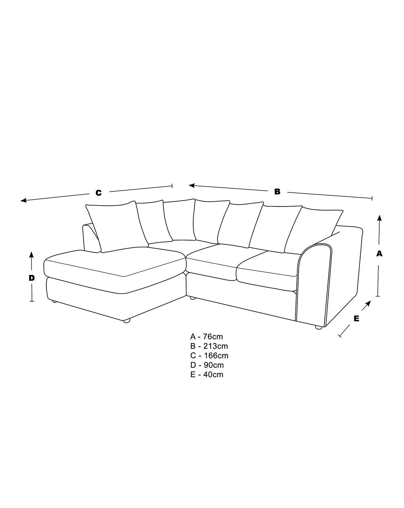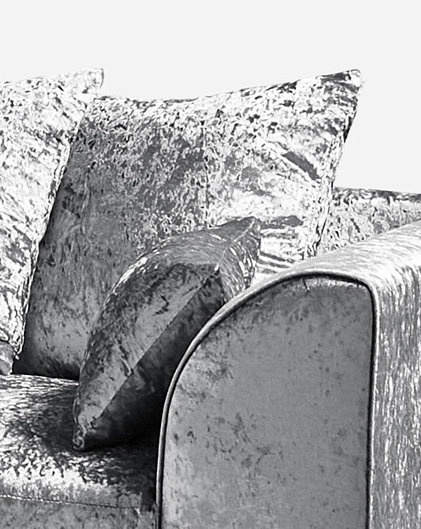 The Chicago Crushed Velvet Left Hand Corner Chaise Sofa features a scatter backed cushion design and piping detail. Upholstered in a soft crushed velvet fabric, composed of 100% polyester. Available in multiple colour options.