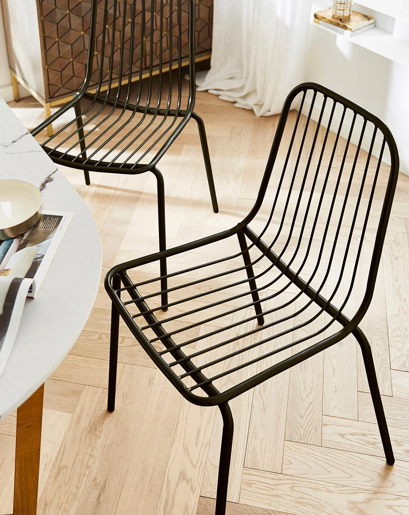 Offering a modern, industrial style, our Colden chairs have a metal frame with a matte black or glossy gold coating. The design is a cool way to include a different texture into your dining room without breaking the bank. Pair with our beautiful own brand seat cushions for that added comfort and warmth!