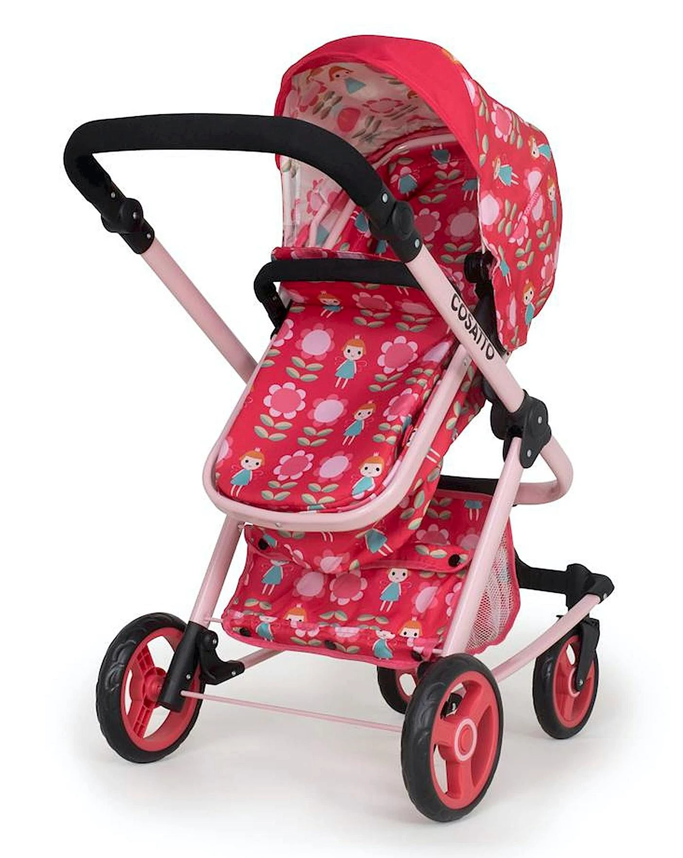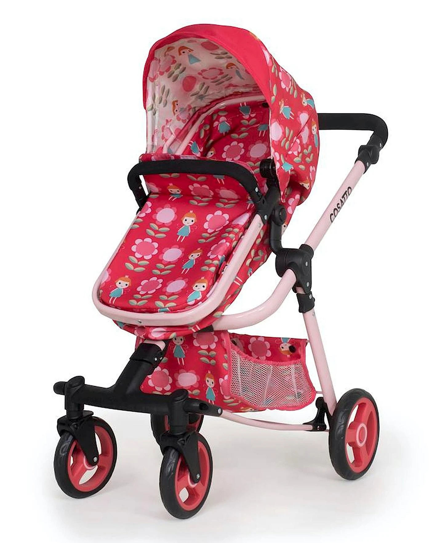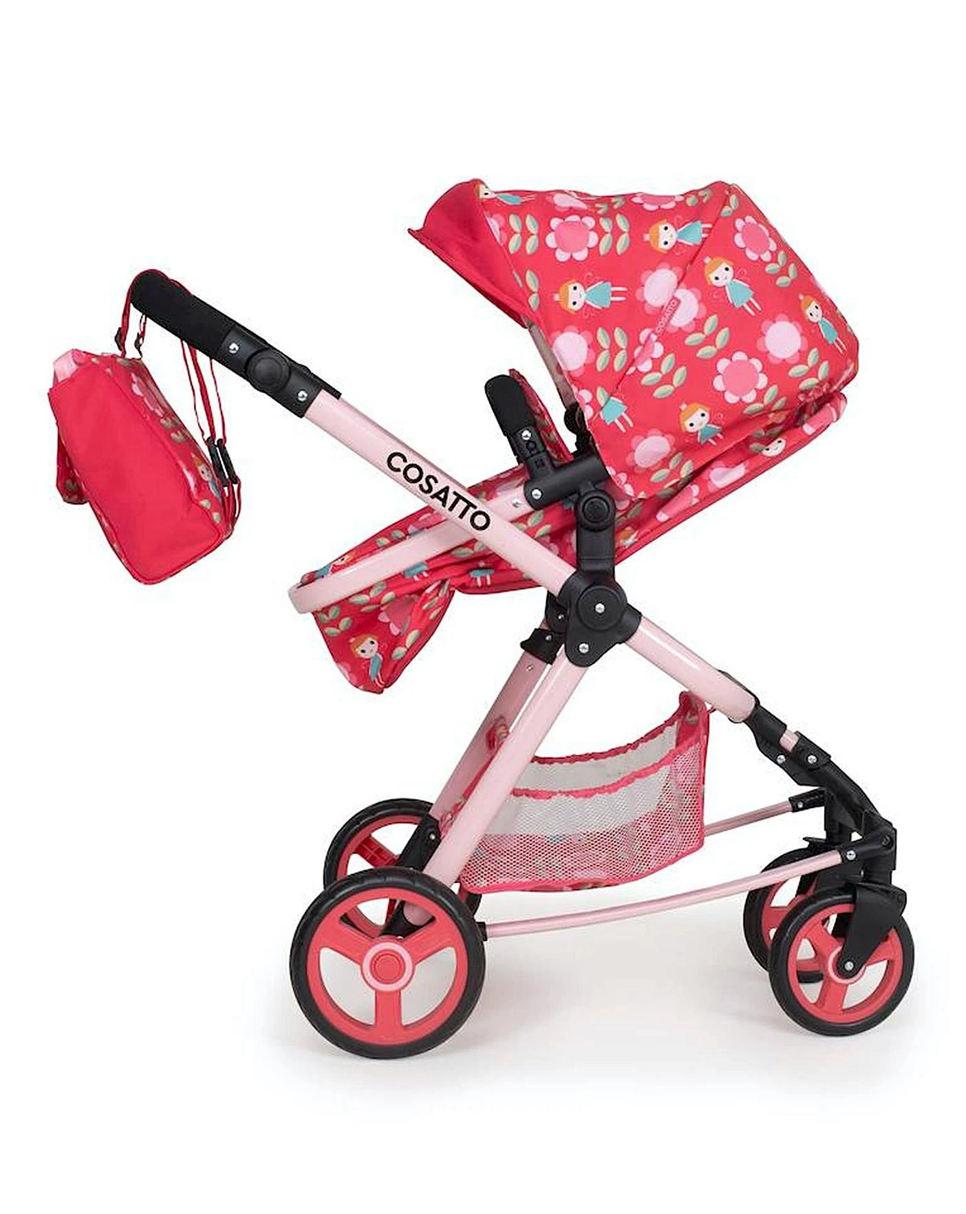 Cosatto Giggle Quad Dolls Pram & Car Seat – Fairy Garden. Your littl’un can be just like you now with the Cosatto Giggle Quad Dolls Pram. They can take their dolls with them wherever they go. There’s a lightweight easy-fold frame for handy storage, an integrated hood, four sturdy easy-to-manoeuvre wheels, a tray for their bits and bobs plus a matching car seat and bag to accessorise. Your littl’un and their dolly will have everything they need.