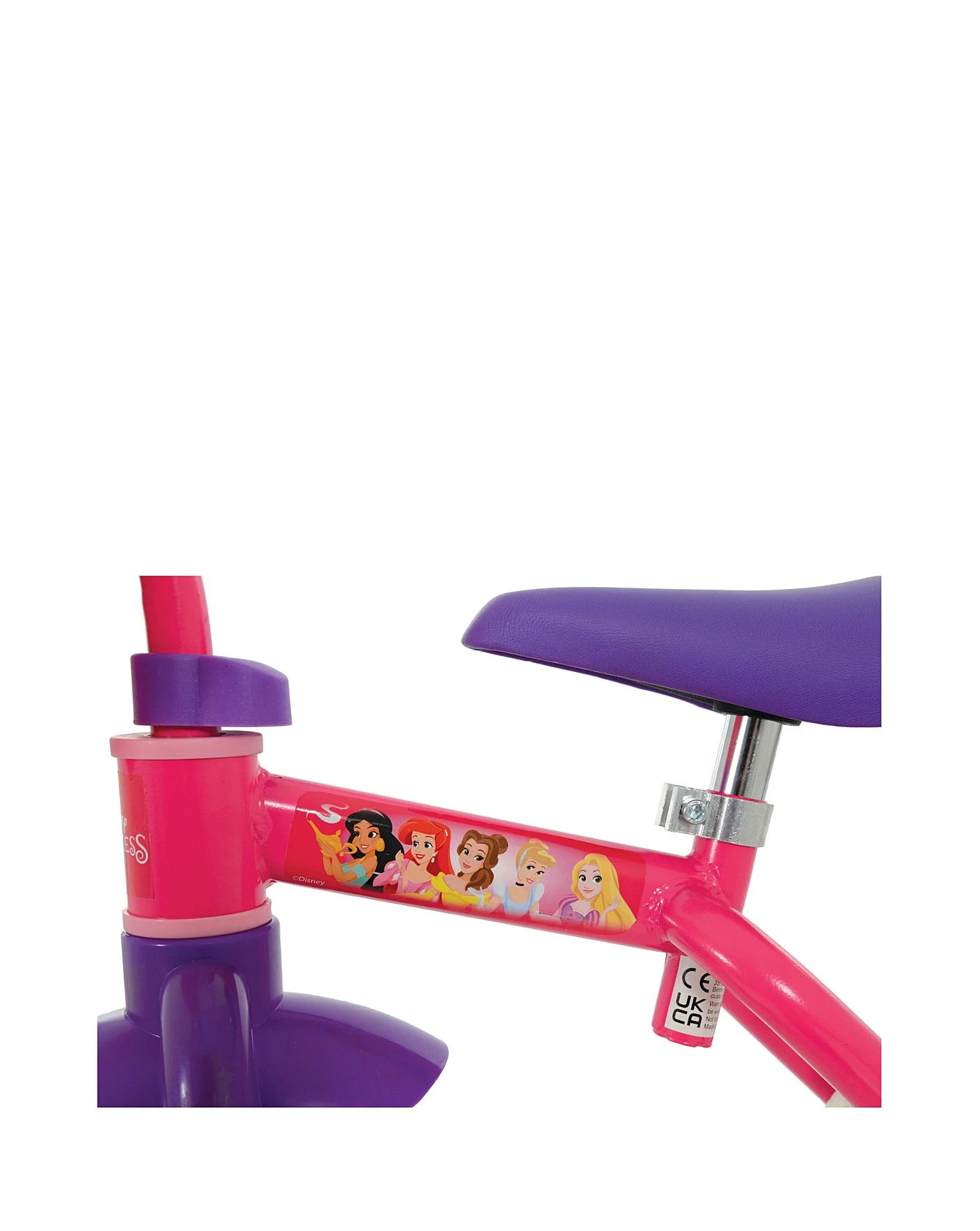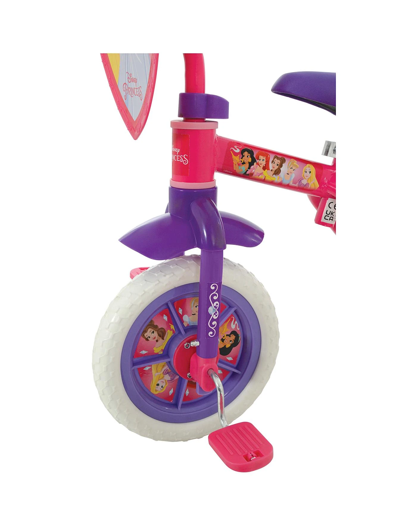 Disney Princess 2-in-1 10 Training Bike. A perfect first bike for any Princess to be, with beautiful character graphics, the 2-in-1 converts easily from a training to a balance bike in a matter of minutes. Stage one is the pedal bike where riders can get used to pedalling and steering with the aid of rear stabilisers. Stage two is the balance bike mode where pedals and stabilisers are removed as core coordination, strength and skill improve to allow ‘push off’ and balance via freewheeling. The wide EVA moulded wheels with mag wheel inner provide extra stability and the deep tread tyres offer a strong yet comfortable ride with excellent grip. Both saddle and handlebars are adjustable in height to suit children as they grow and gain in confidence and a soft saddle and hand grips provide additional comfort whilst learning.