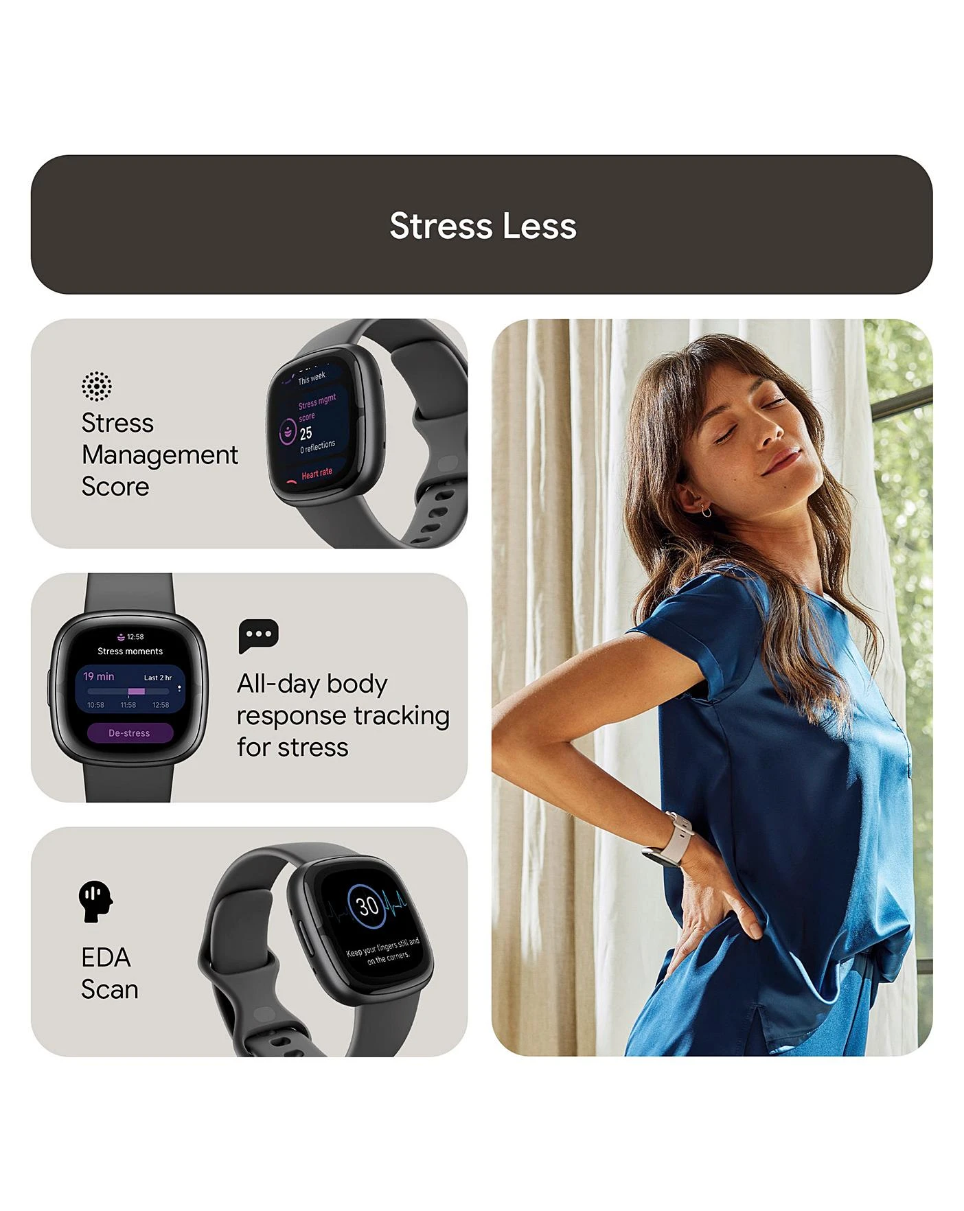 Meet Sense 2 – the smartwatch designed to help you stress less, sleep better & live healthier. Get help identifying stress and get the tools to better manage it. Learn more about your sleep and how to improve your rest with detailed night-time tracking and a unique Sleep Profile. Track key heart-health indicators so you can make more informed wellness decisions. Plus, Sense 2 is packed with advanced activity tracking and smartwatch features and includes six months of Fitbit Premium Membership.