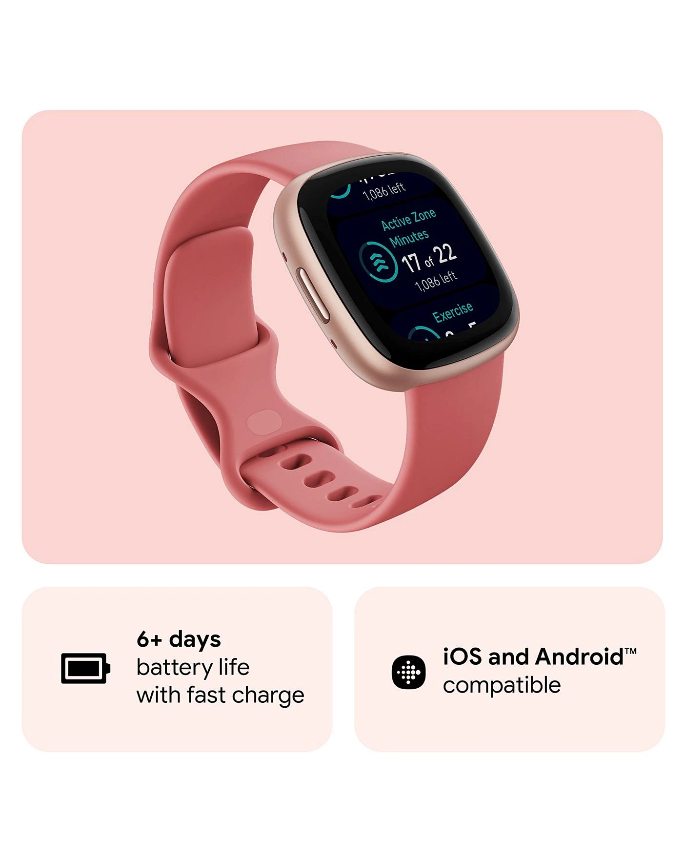 SMART EXPERIENCES: Never miss a call, text or calendar event, plus see app notifications at a glance – right on Versa 4 (available when phone is nearby). Easily respond to messages on the go by sending quick replies and voice replies from your wrist. Available when phone is nearby; quick replies and voice replies on Android only. Use Amazon Alexa Built-in to get quick news and weather, set bedtime reminders and alarms, control your smart home devices and more – just by speaking to your watch. Versa 4 is compatible with most popular phones and tablets running on the latest versions of Android and iOS. With a 6+day battery life, Fitbit Versa 4 tracks your morning, night & everything in between without needing to stop for a charge. If you’re always on the move, fuel up with fast charging that gives your watch a full day’s charge in just 12 minutes. Choose from thousands of clock face designs and use the Clocks app to store up to five favourites on your wrist.