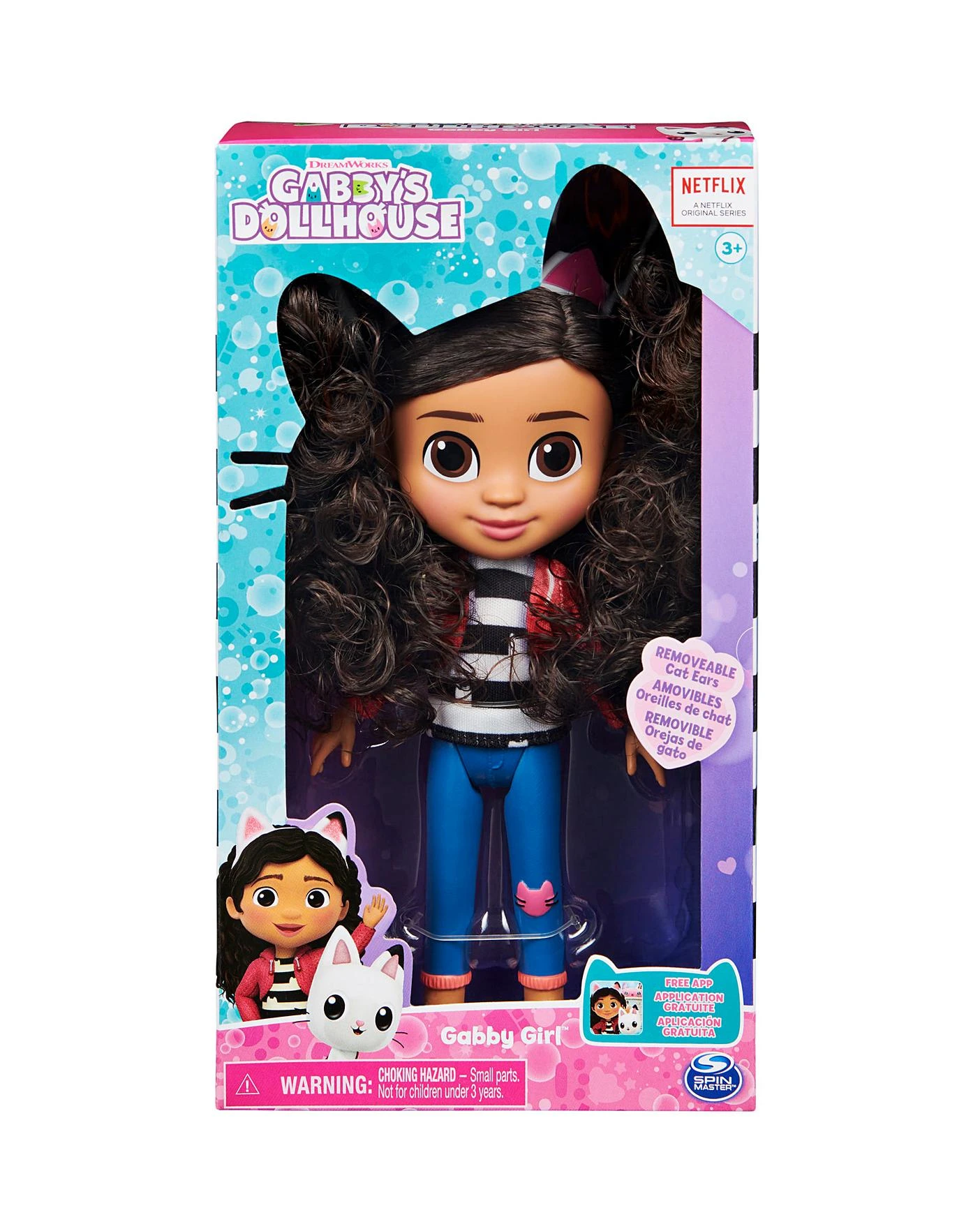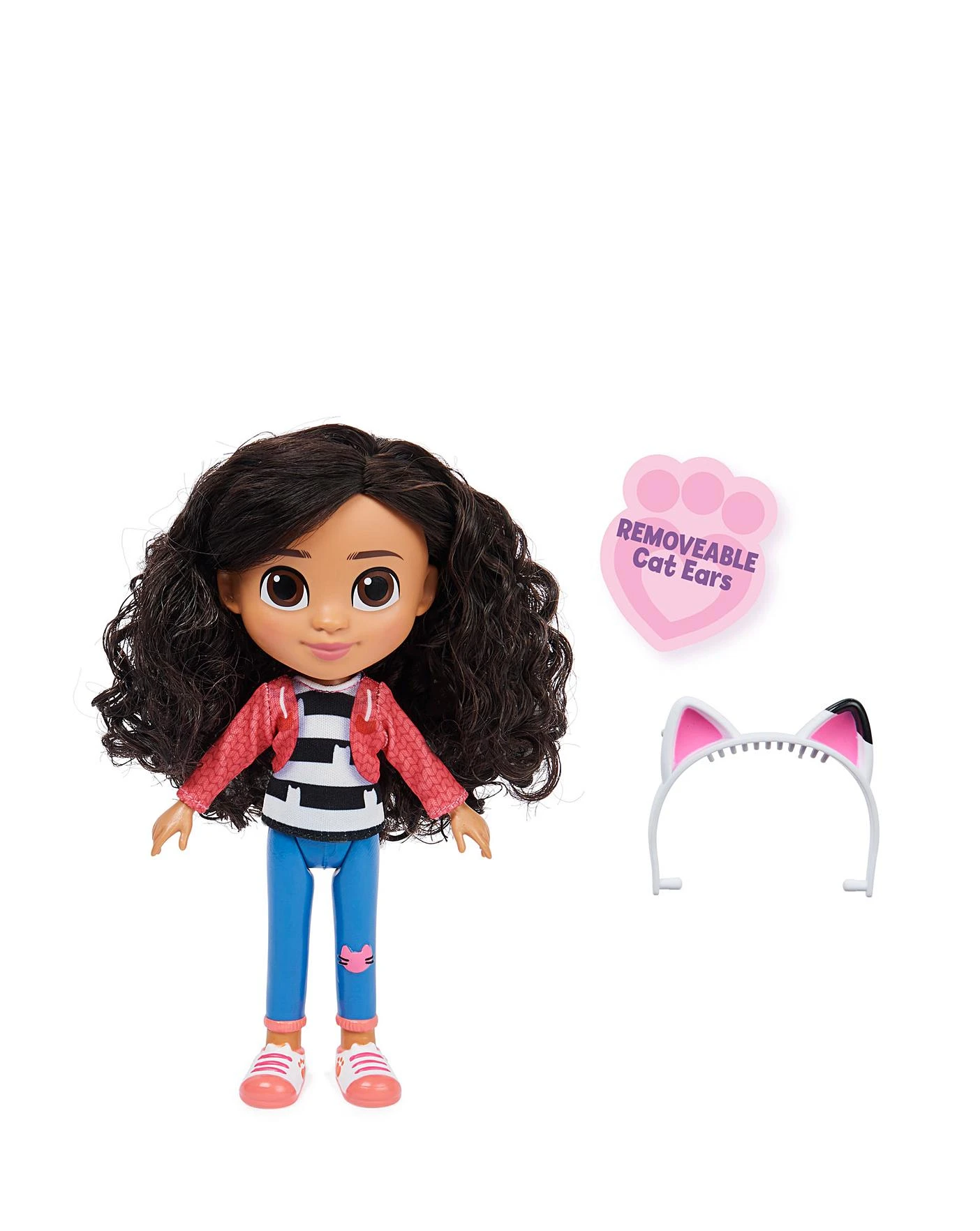 Hang out with Gabby from Gabby’s Dollhouse with the all-new Gabby Girl doll. Featuring realistic details from head to toe, this 20.3-cm doll brings Gabby to life. Gabby Girl wears her classic outfit from the show, including trainers, jeans with a kitty patch, a fabric top and her signature cat ears. Her cat ears headband is removable and she even has soft and curly hair that you can style. With her true-to-show look, this kids’ doll is the perfect companion to play out your own exciting storylines at home. Pose Gabby’s arms and legs and use your imagination to re-create your favourite scenes from the show. The Gabby Girl doll makes a great gift for kids and fans of the show. Join your new BFF Gabby for endless adventures with the Gabby’s Dollhouse Gabby Girl doll.