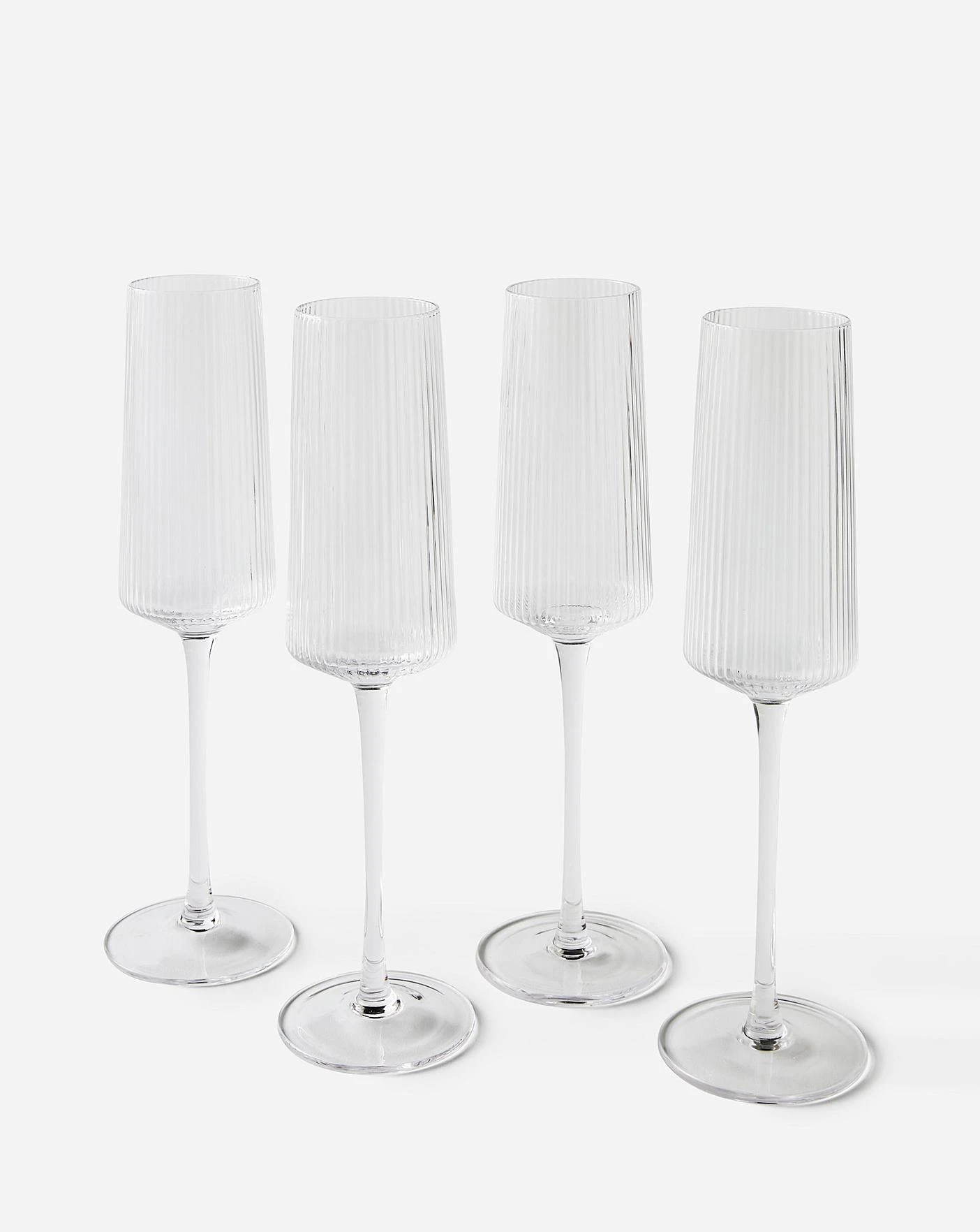 Gray & Osbourn set of four champagne glasses with ribbed detailing.