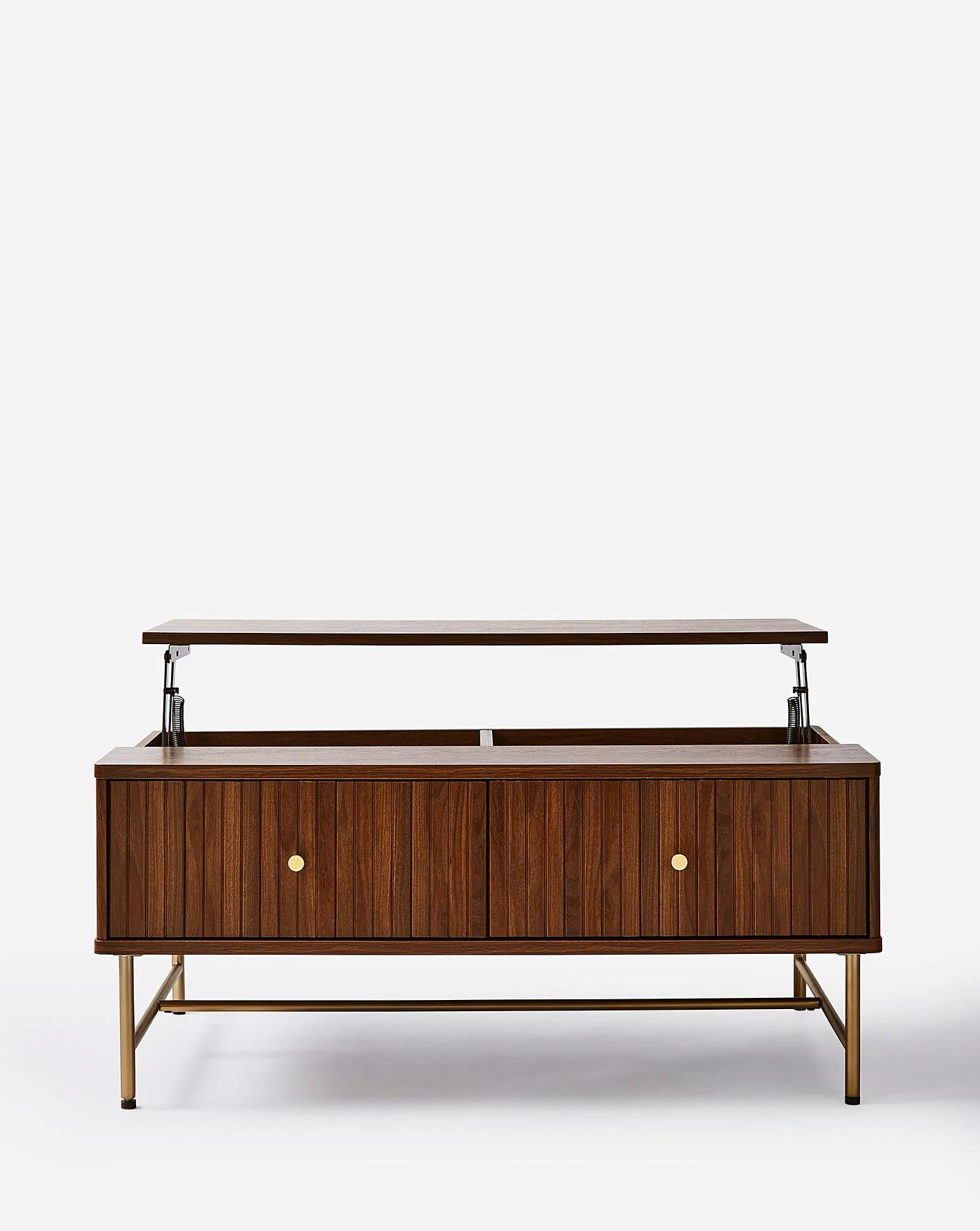 Part of the Gray & Osbourn brand, the No.132 range embodies the mid-century style like no other. The luxurious design includes a beautiful grained wood effect body accented with brass coloured handles and a stylish slatted front that adds texture. The No.132 Coffee Table features two drawers and an innovative lift-up tabletop, perfect for storing your home essentials.