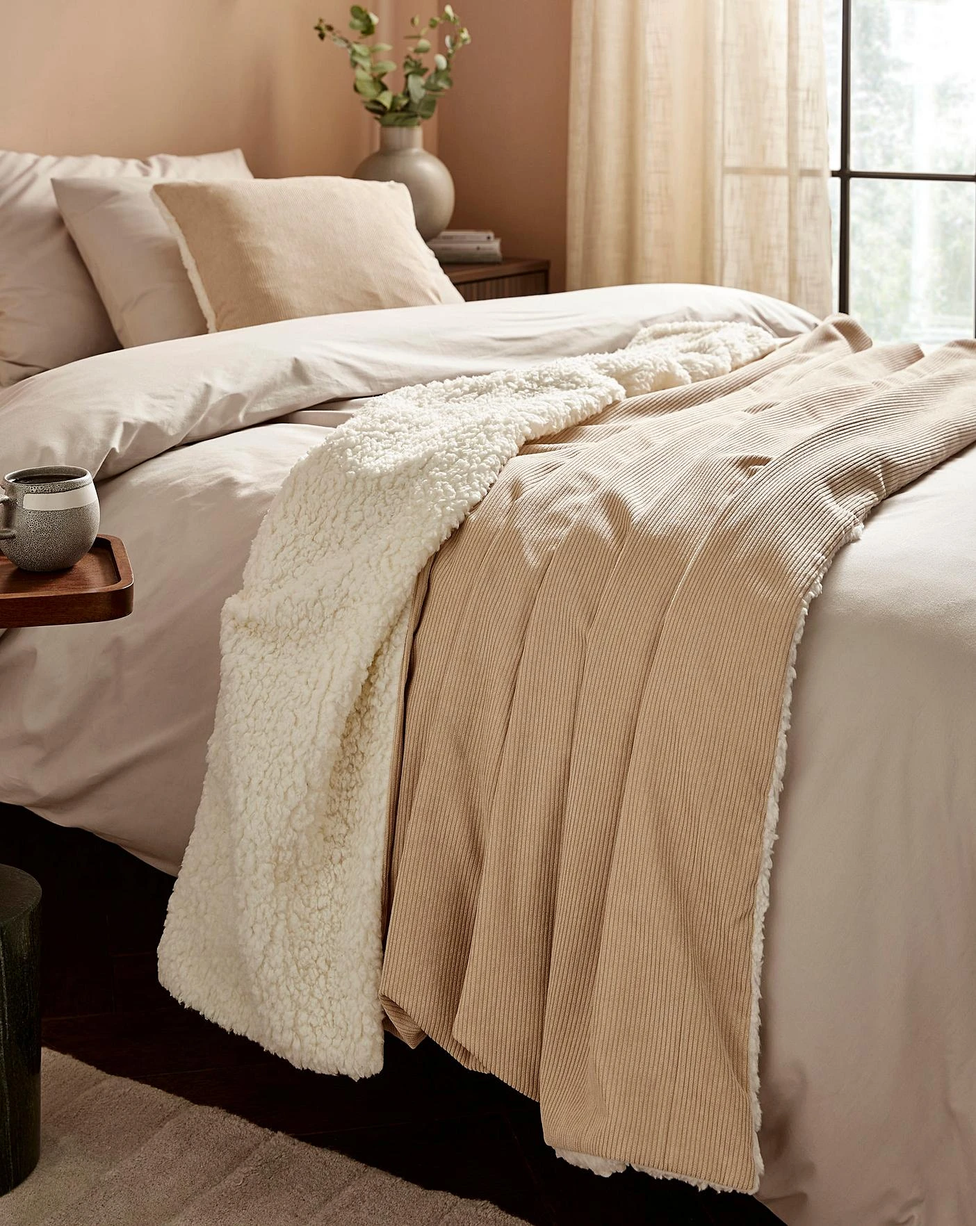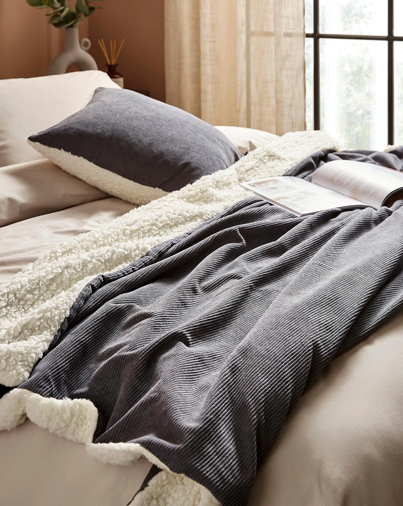 Corduroy throw with a sherpa reverse.