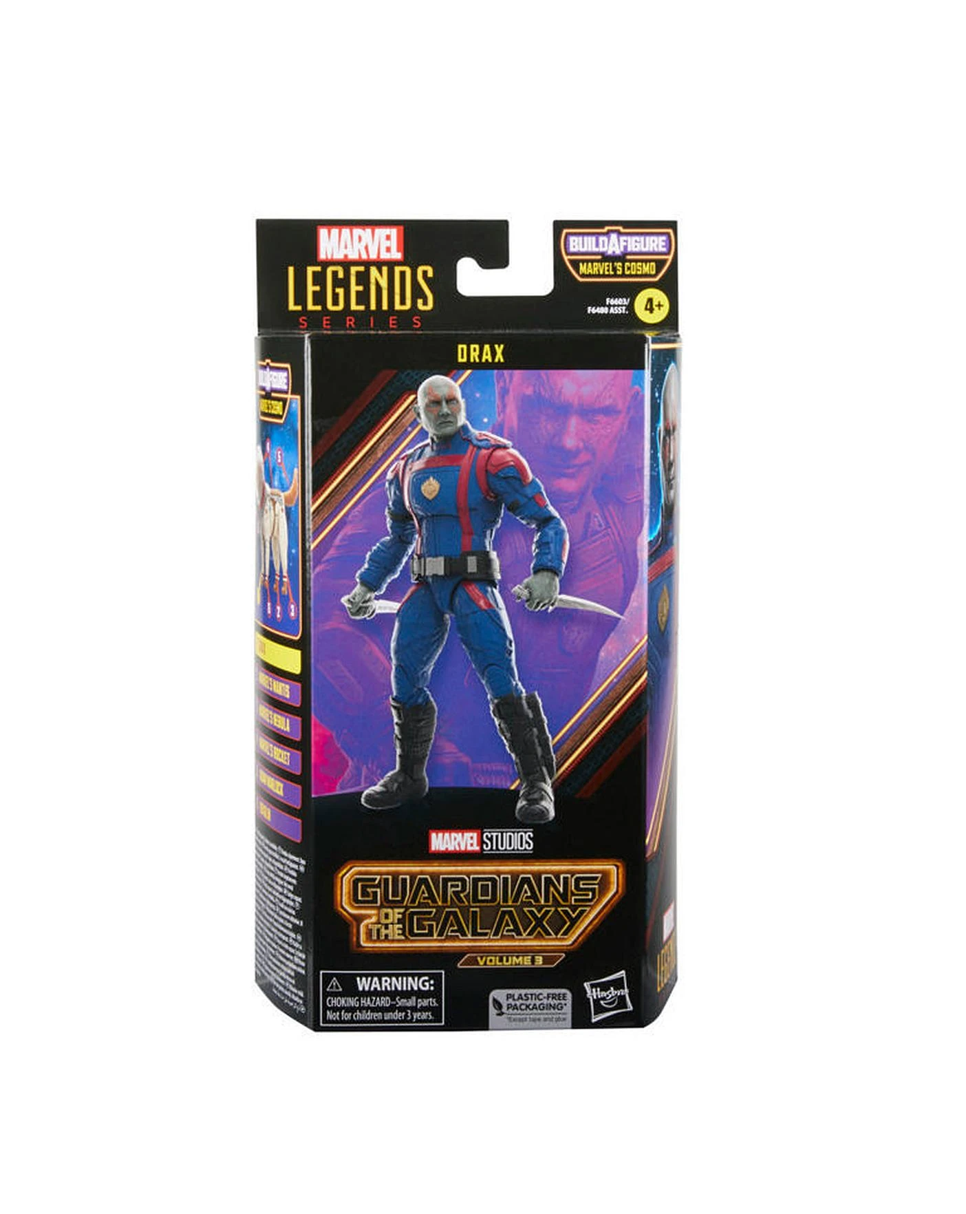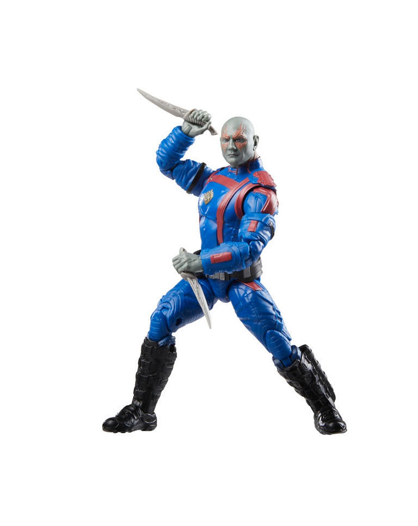 - Perfect for a fun imaginative play session with friendsComes with exquisite features and decoration for a realistic feelSuitable for ages 4 years and aboveIt’s time for some action! Give your little one a perfect playtime partner with this Marvel Legends Series 6-inch Drax. Drax finally dons a shirt and becomes a more active member of the Guardians by helping set up their new headquarters. However, he always has trouble thinking before he acts. This 6-inch-scale figure is detailed to look like the Drax character from Marvel Studios’ Guardians of the Galaxy Vol. 3. With premium details and multiple points of articulation, the figure includes three movie-inspired add-ons, including two knife accessories. Suitable for children over four years. This figure includes one Build-A-Figure part, additional figures are each sold separately based on availability.Brand: Marvel Type: Figures Colour: Blue Pack Qty: 1 Assembly: No Height: 25.4CM Material: Plastic Width: 14.0CM Age: 4 + Depth: 6.0CM Model No: F66035X0 Bar Code: 5010994179854