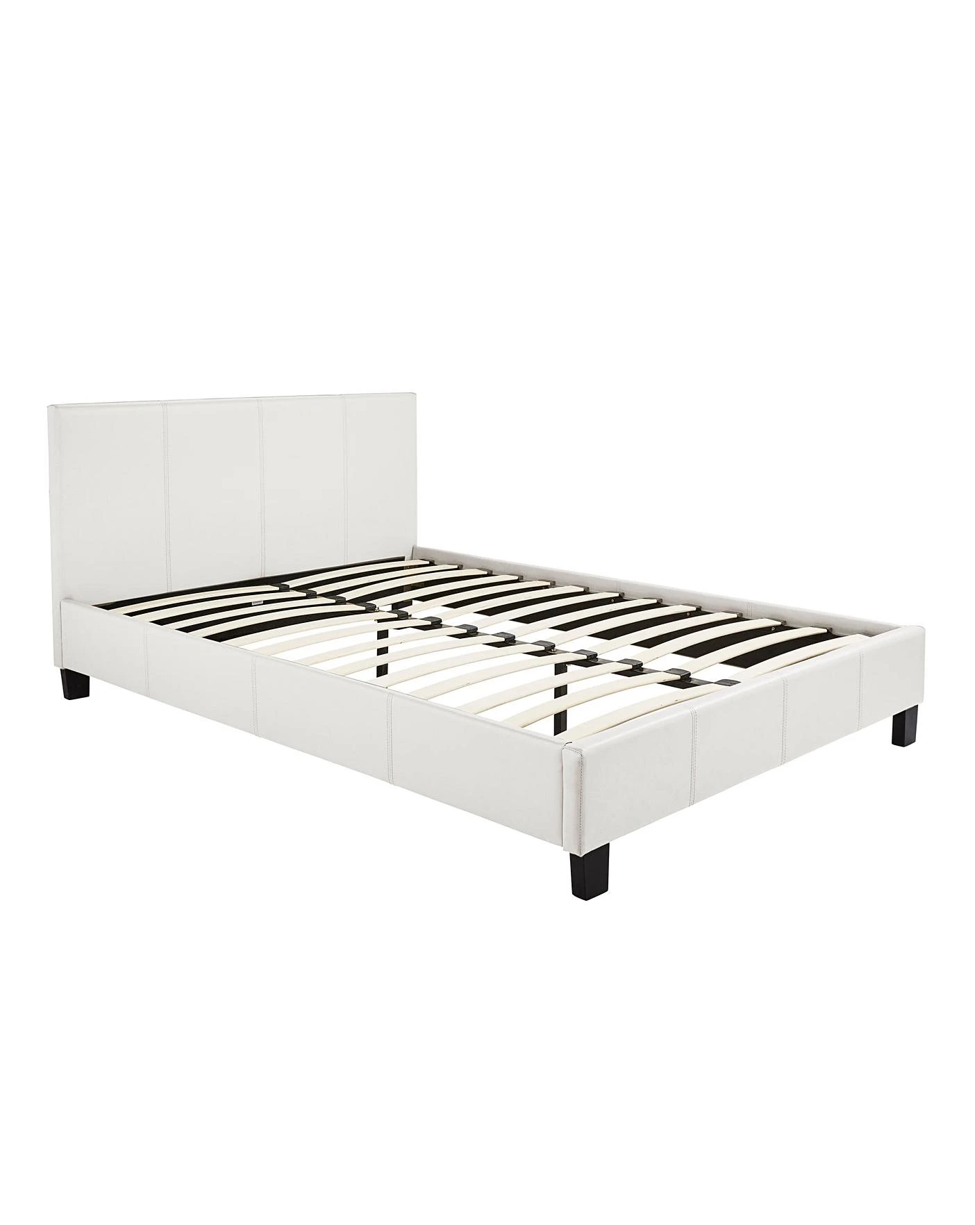 The Hayden faux leather bedstead is upholstered in a leather-look material providing a stylish contemporary finish featuring a sprung slat base for extra comfort. Self-assembly.