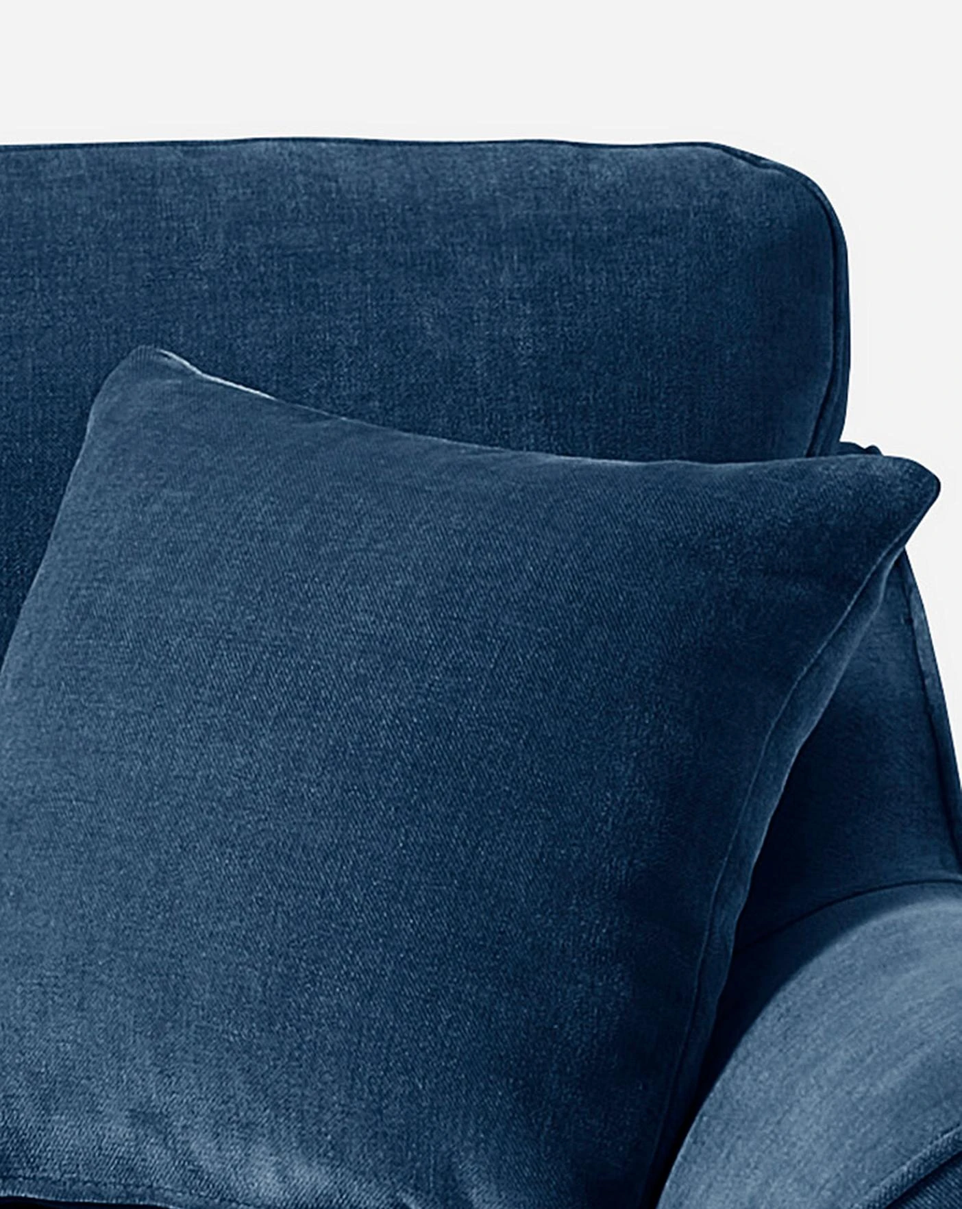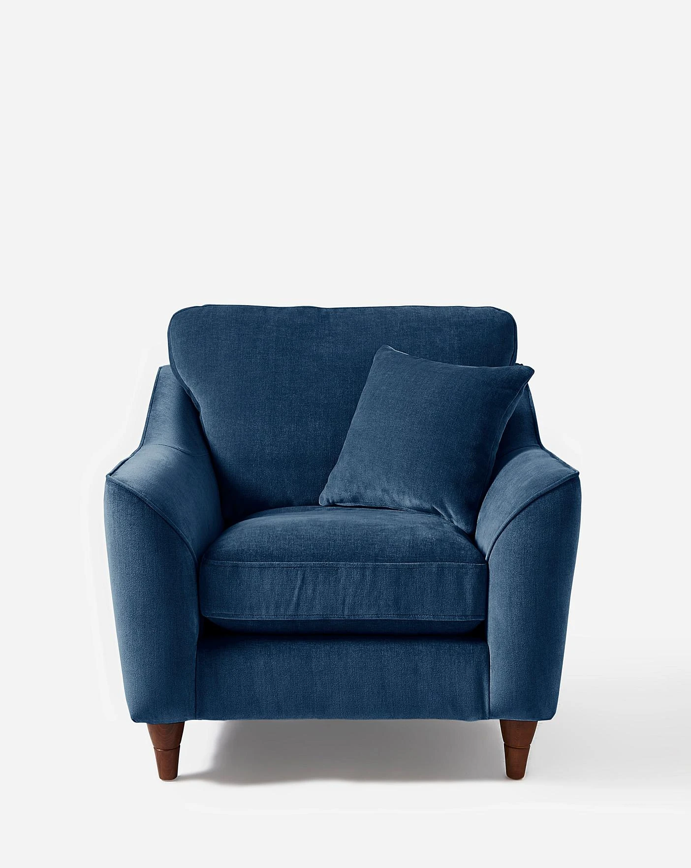 The Hepburn Chair features a classic, curved silhouette with design wooden feet and additional matching arm cushions. The Chair is composed of a 100% polyester chenille fabirc with piped arms and seats.