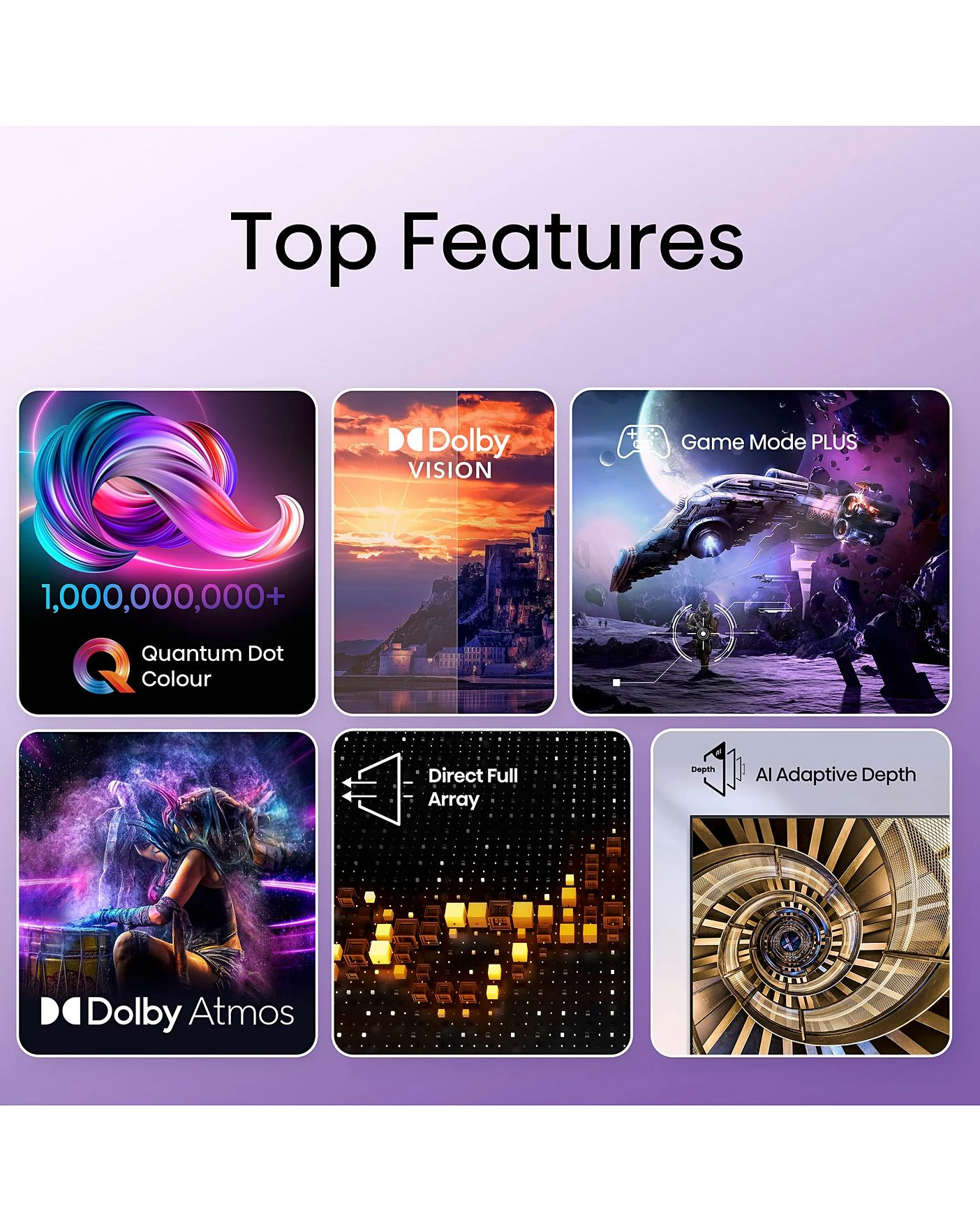 Direct lit Full Array Technology, Quantum Dot Colour – Over 1bn colours, Quadcore Processor with AI 4k upscaling, Dolby Vision, Complete HDR Solution, VIDAA 6 Smart OS with Vidaa Voice, Energy Rating: G