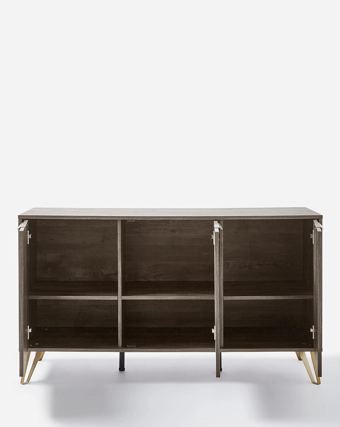 ’Part of the Joanna Hope Brand, the Coco Range will create a focal point in your home. Distinctive yet understated, this Sideboard is characterised by its chevron patterned door-fronts and golden handles with trendy hairpin legs. Featuring a natural looking textured grain finish, giving this look and feel of real wood, this range will steal the show and is perfect for creating a boutique hotel vibe in your home.