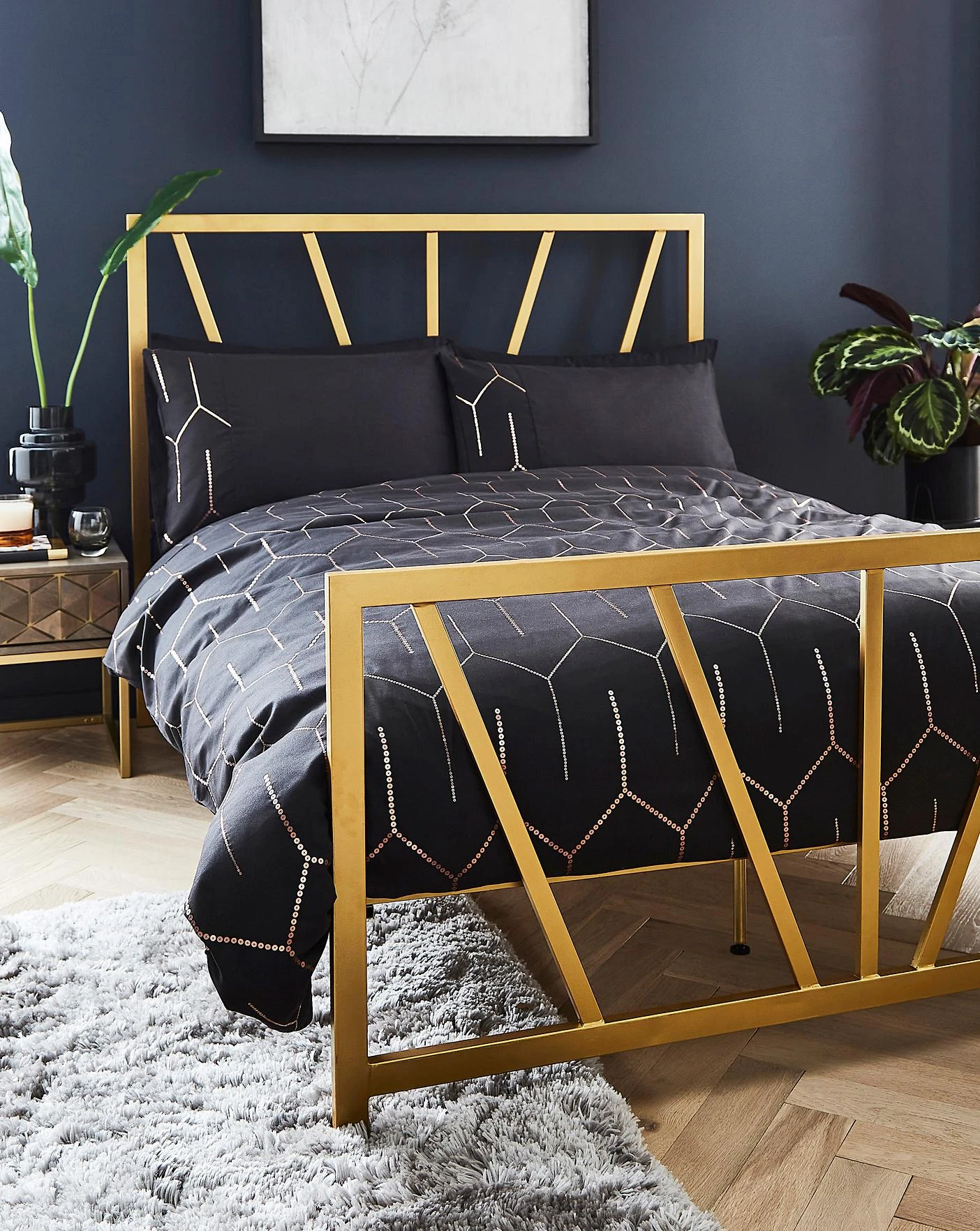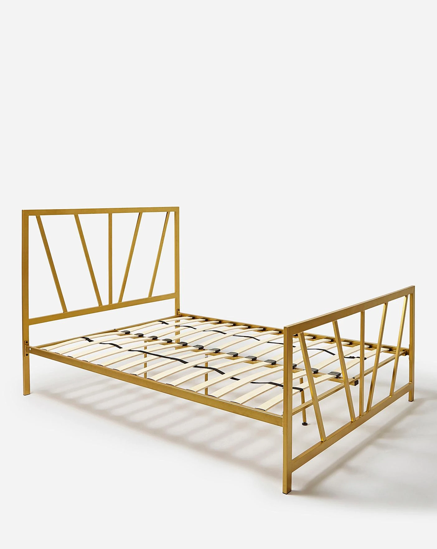 Part of the Joanna Hope Brand. The Grace Metal Bed Frame, its antique gold finish will be a showstopper in your bedroom. Characterised by its unique, eye-catching headboard, the bedframe is sure to elevate your space and will fit in seamlessly with any decor.