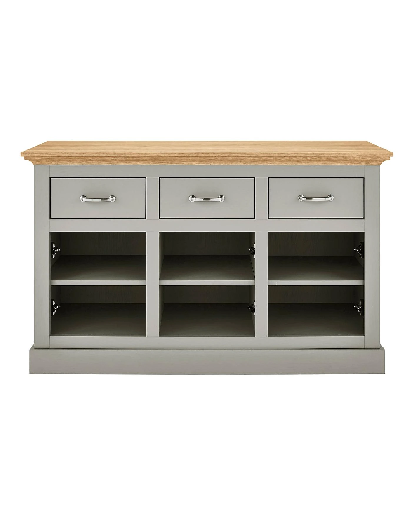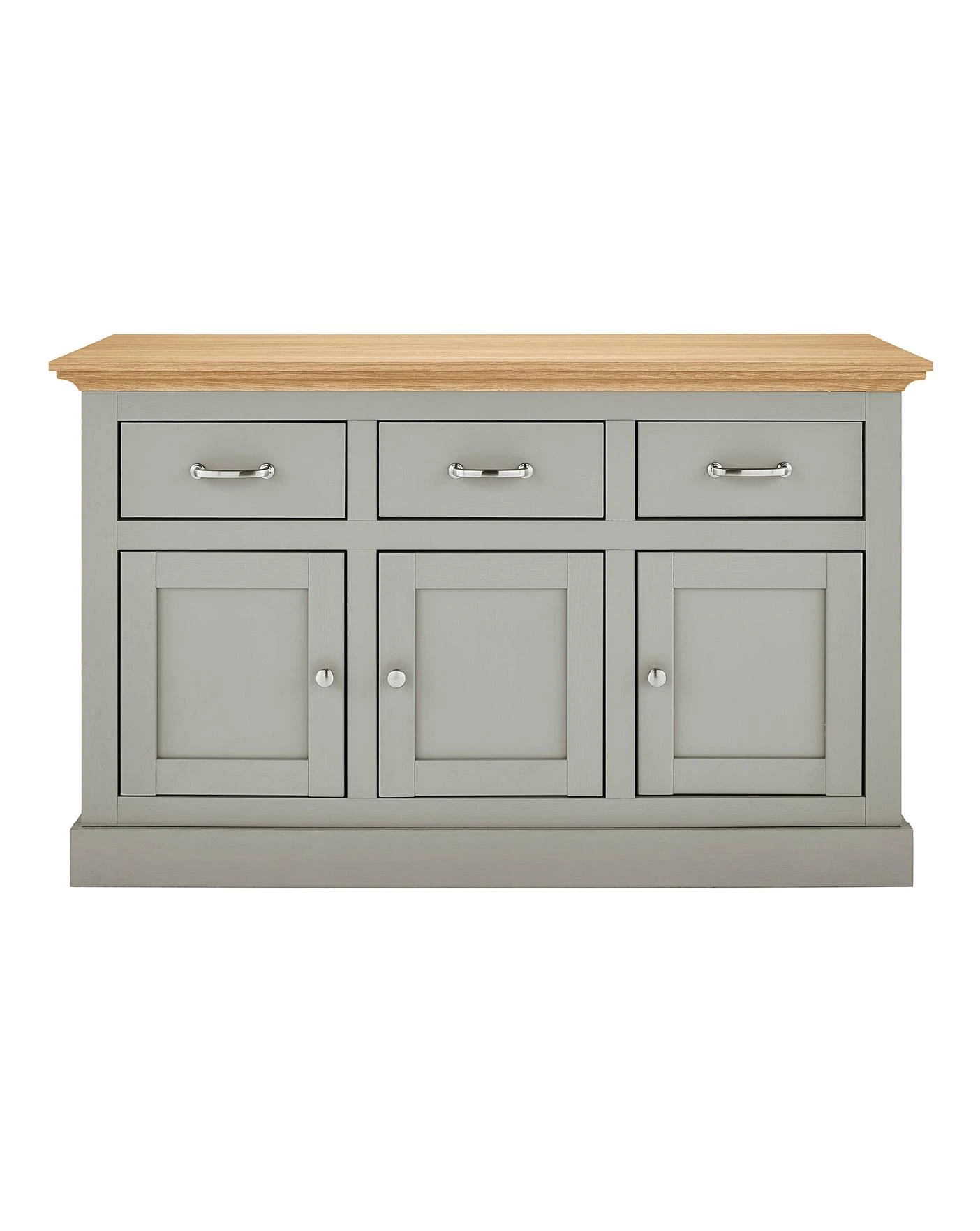 Part of the Julipa Brand. Bring an elegant country-style charm into your bedroom with the Ashford Living range. Choose between the oak-effect tops and contrasting wood-effect frame, or an oak-effect finish all over. Featuring a chunky plinth, this range is perfect to add a warm and homely feel to your space. Featuring three cupboards and three drawers, providing plenty of storage space and keep your space clutter-free.