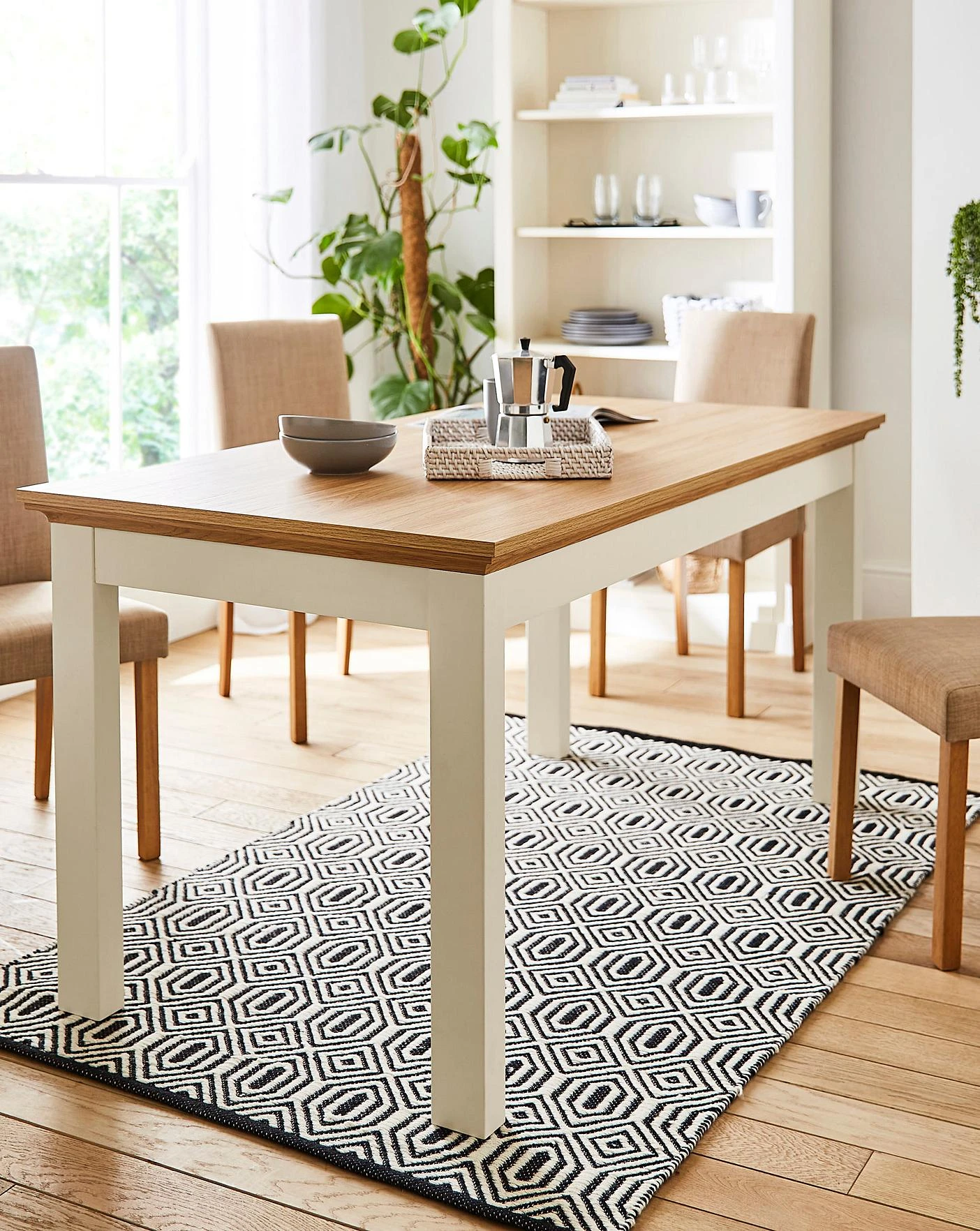 Part of the Julipa Brand. Bring an elegant country-style charm into your dining room with the Ashford Dining range. Choose between the oak-effect tops and contrasting wood-effect frame, or an oak-effect finish all over. Featuring a chunky plinth, this range is perfect to add a warm and homely feel to your space.