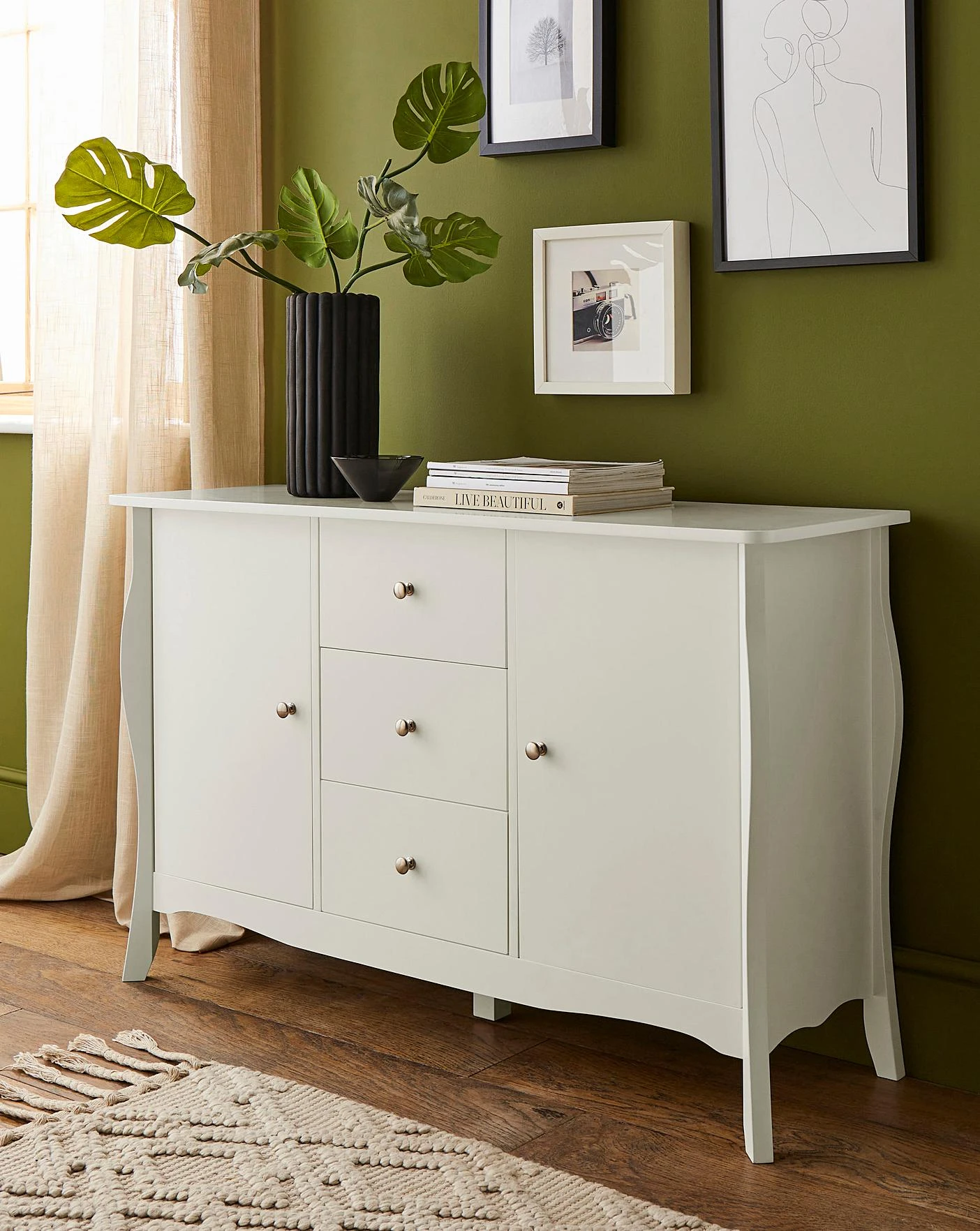 Part of the Julipa brand, this 2 door 3 drawer sideboard is a matt white finish for additional storage within your living room.