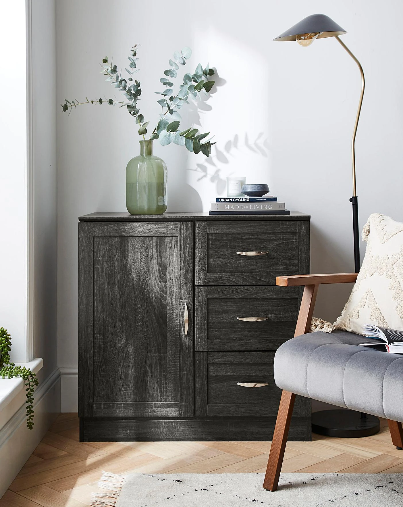 The Kingston Living range is an essential living furniture range that perfectly complements both classic and contemporary decor styles. The natural looking distressed grain finish gives this range the appearance of real wood, which is perfectly complemented by the metal handles that further accentuate the stylish profile. Featuring classic framed door and drawer fronts with an internal shelf, this range is perfect for storing all your essentials.