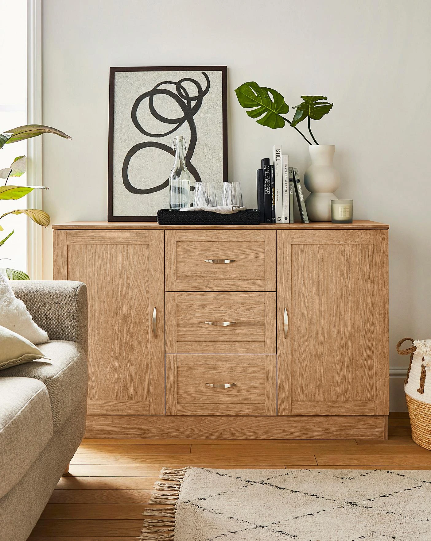 The Kingston Living range is an essential living furniture range that perfectly complements both classic and contemporary decor styles. The natural looking distressed grain finish gives this range the appearance of real wood, which is perfectly complemented by the metal handles that further accentuate the stylish profile. Featuring classic framed door and drawer fronts with an internal shelf, this range is perfect for storing all your essentials.