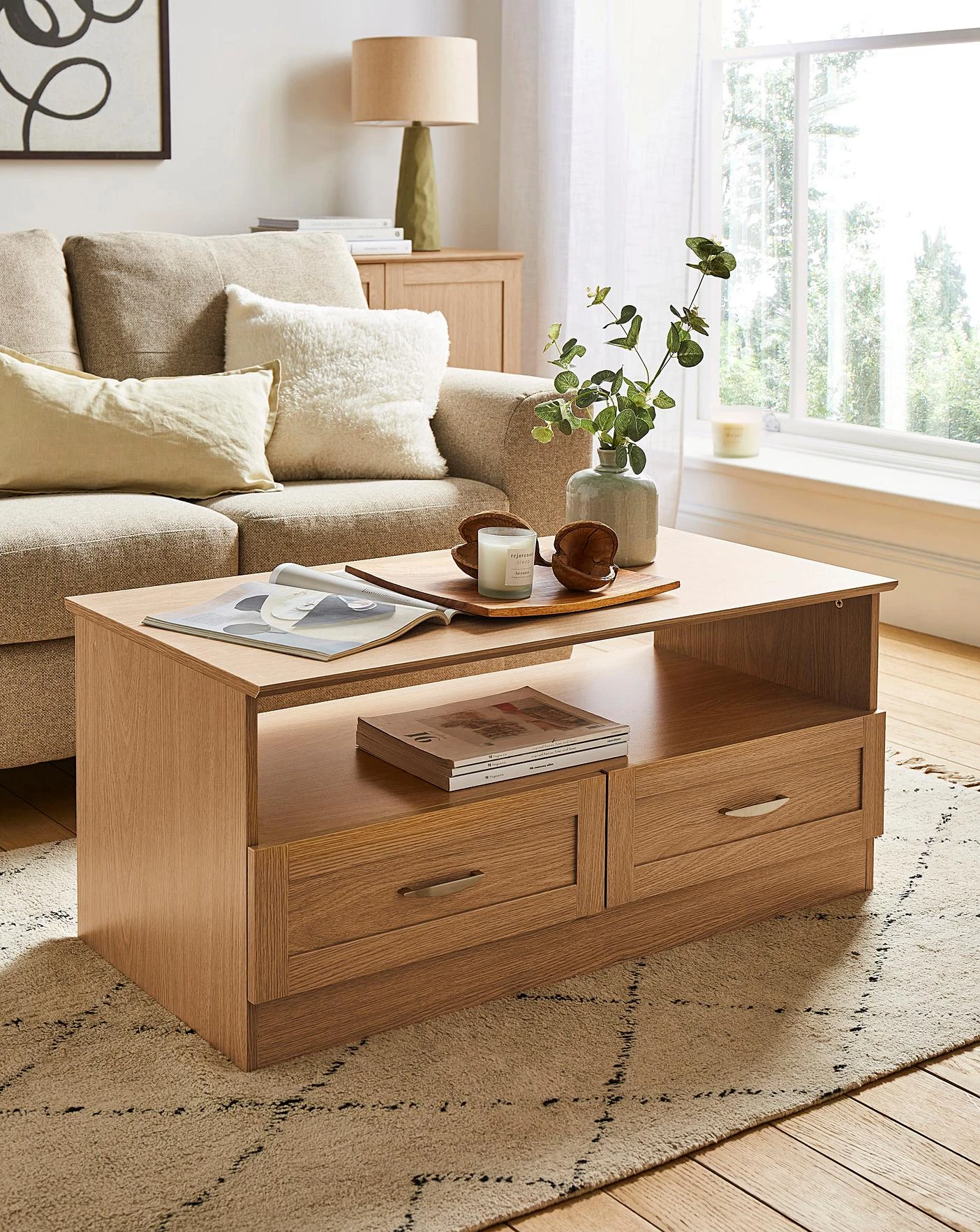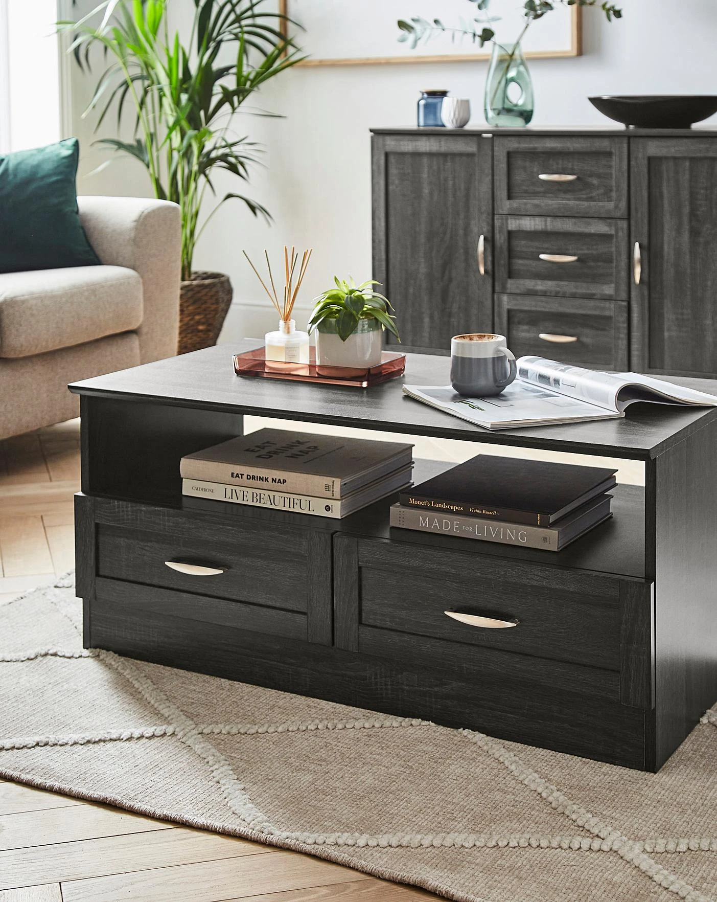 The Kingston Living range is an essential living furniture range that perfectly complements both classic and contemporary decor styles. The natural looking distressed grain finish gives this range the appearance of real wood, which is perfectly complemented by the metal handles that further accentuate the stylish profile. Featuring classic framed drawer fronts and an additional shelf, this range is perfect for storing all your essentials.