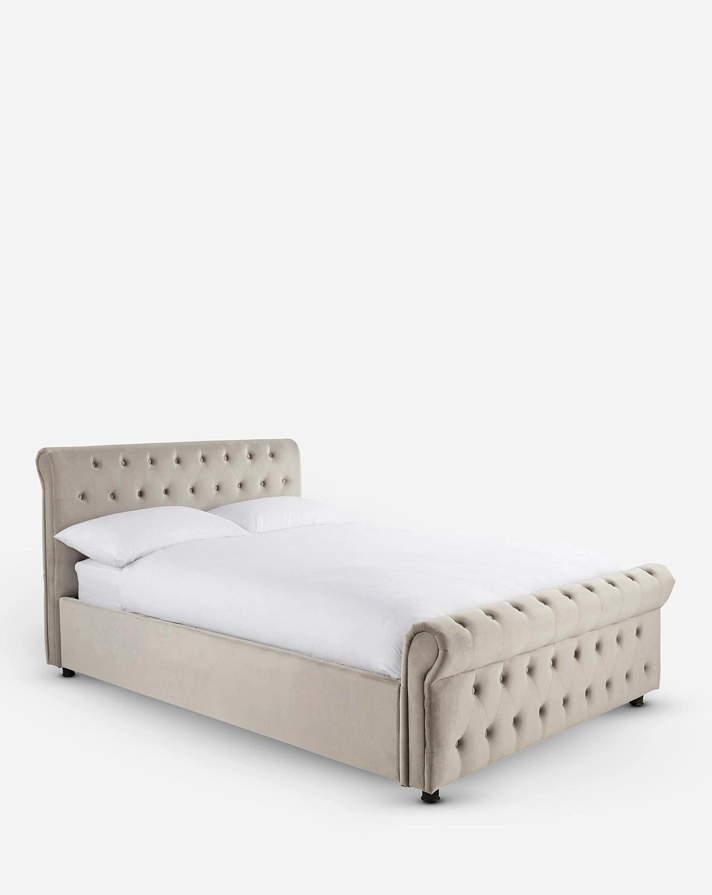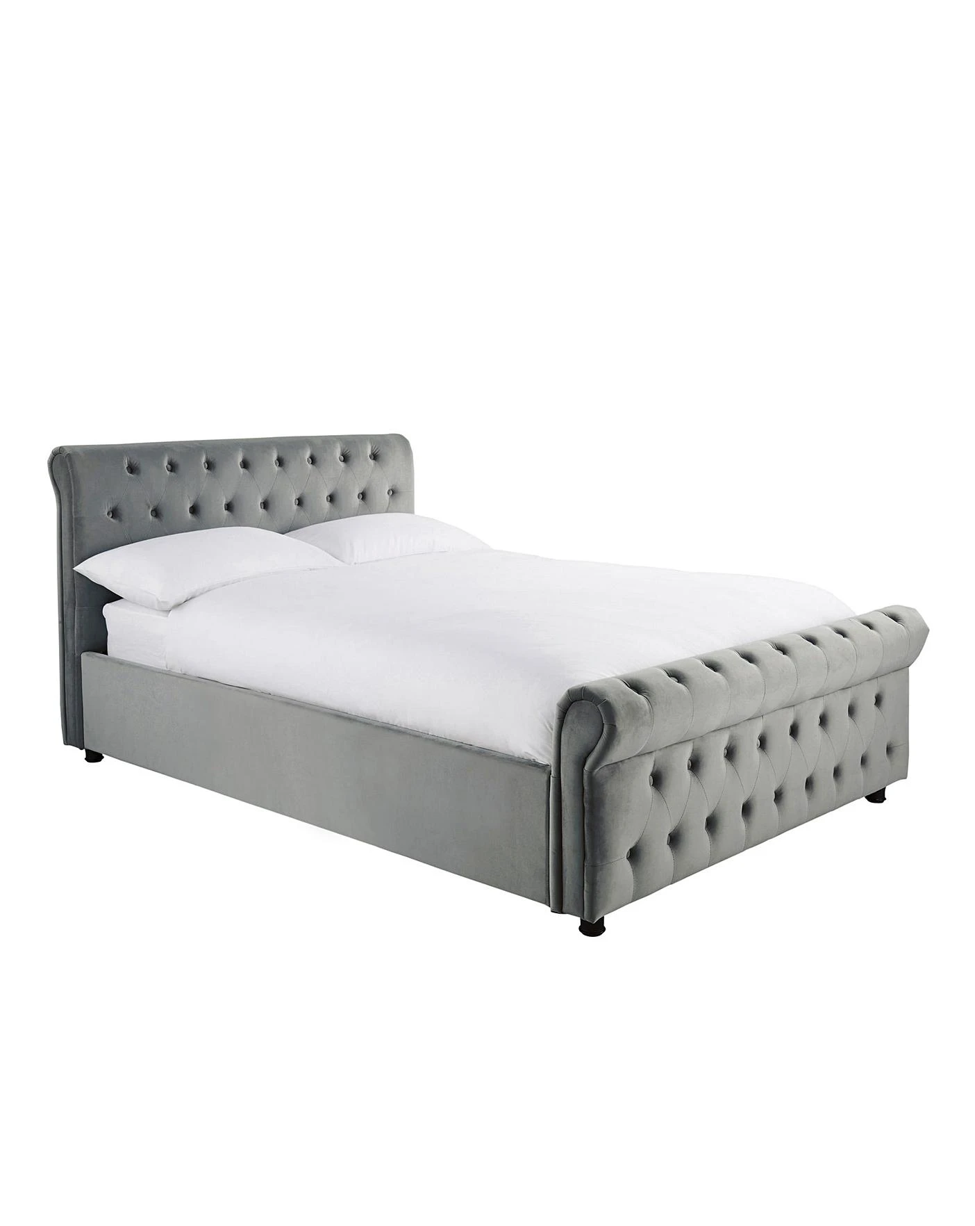 The Kingston Bedstead has an elegant scroll top design to the head and foot end. Upholstered in a beautiful, soft velvet like fabric with a luxury feel. Features a sprung slat base for added comfort. This option comes with Airsprung Darcy Deep Quilt mattress that offers luscious layers of soft fillings and a deep quilted damask sleeping surface fabric. The Darcy also has the added benefit of being rolled for easy movement whilst you install it.
