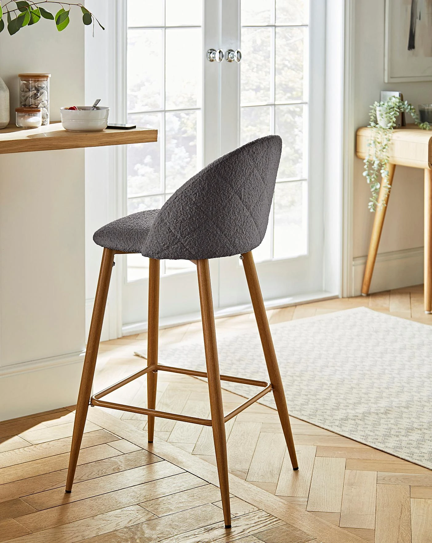 The Klara Bar Stool is a luxurious and elegant addition to your home. Upholstered in a stunning boucle fabric with a diamond quilted detailing at the back, this bar stool is the perfect combination of style and comfort. Finished with tapered oak-effect metal legs.