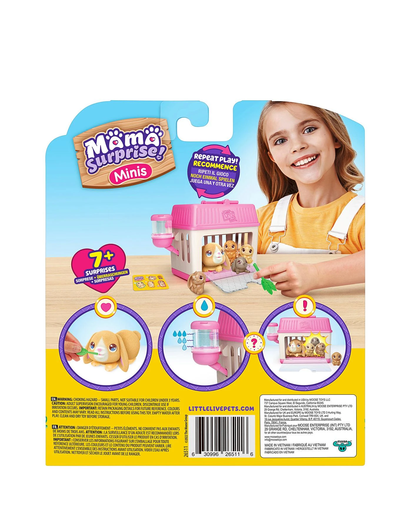 Little Live Pets Mama Surprise takes caring for your pet to a whole new level and now it’s available in a mini format for everyone to be amazed! This Mama Surprise Mini comes as a Lil’ Bunny. She is going to be a Mama… But when? Feed Mama with the celery and her eyes will close. Then place her on top of the paper straw in the mini hutch and close the door. Fill the water bottle and watch as the water disappears! She’s ready to magically have 2, 3 or 4 babies. You’ll be so surprised at who arrives! When will they arrive? There are up to 4 adorable baby mice to discover with sweet little unique poses! They even come with surprise accessories for the babies to wear – a bow or a bib so kids can dress their babies up. Also included is a birth certificate to fill out. This magical experience is repeatable, so that kids can go through the surprise and delight of caring for Mama and discovering her babies, again and again.