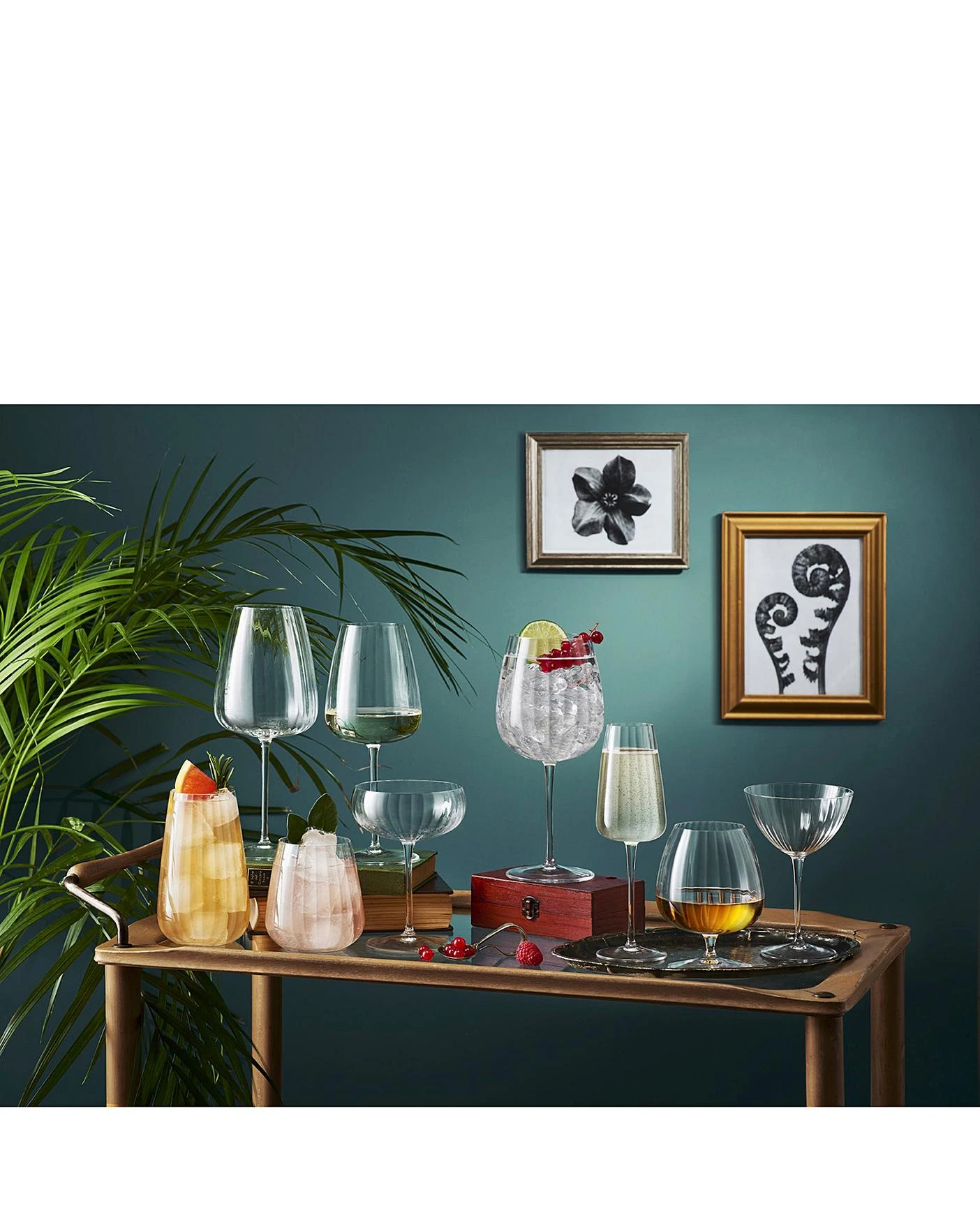 Optica glassware from Luigi Bormioli features a retro-look fluted design inspired by 1920s glassware. Made in Italy with SON.hyx glass technology for strength, clarity and brilliance, these four red wine glasses are dishwasher safe and keep their sparkle. The generous bowl allows red wines to breathe and develop their aroma and taste.