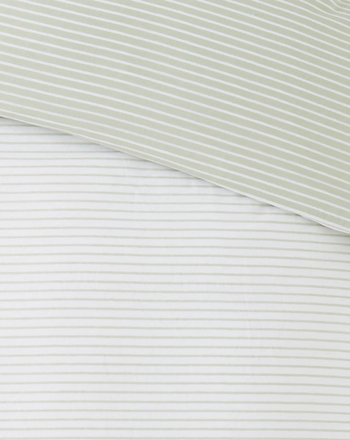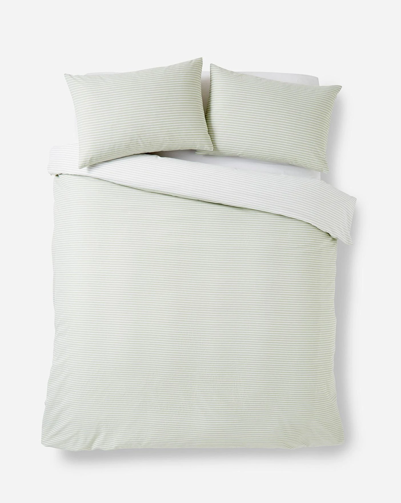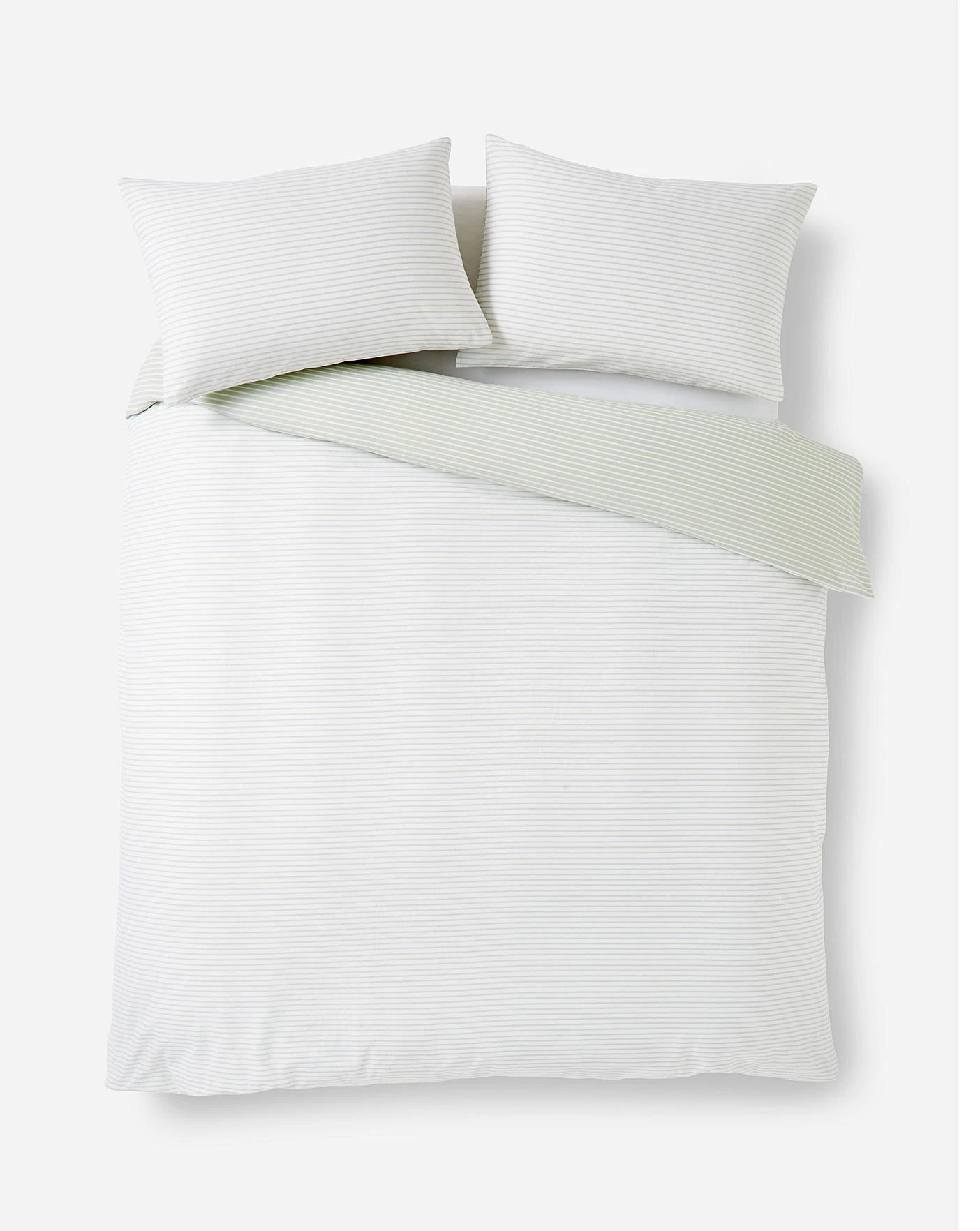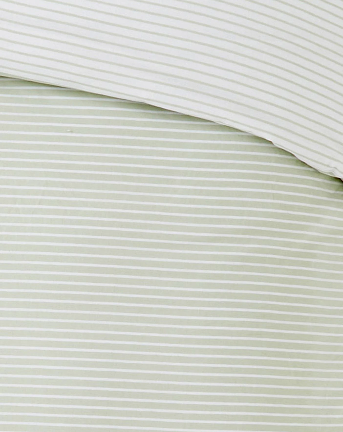 This effortless and relaxed washed cotton duvet set will ensure all-night comfort and bring a fresh feel to any bedroom. The striped design in a fresh seafoam colourway, is fully reversible for two looks in one.