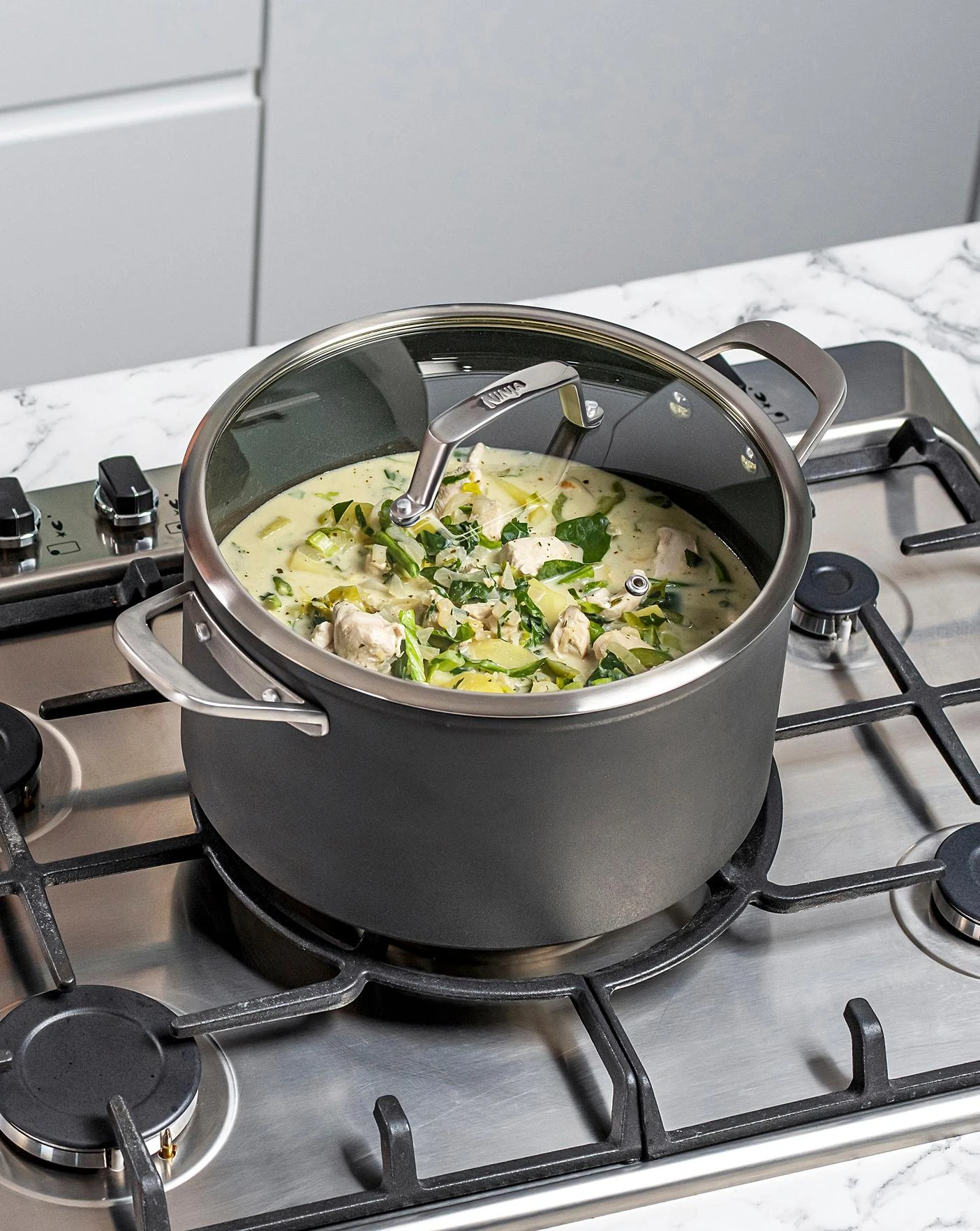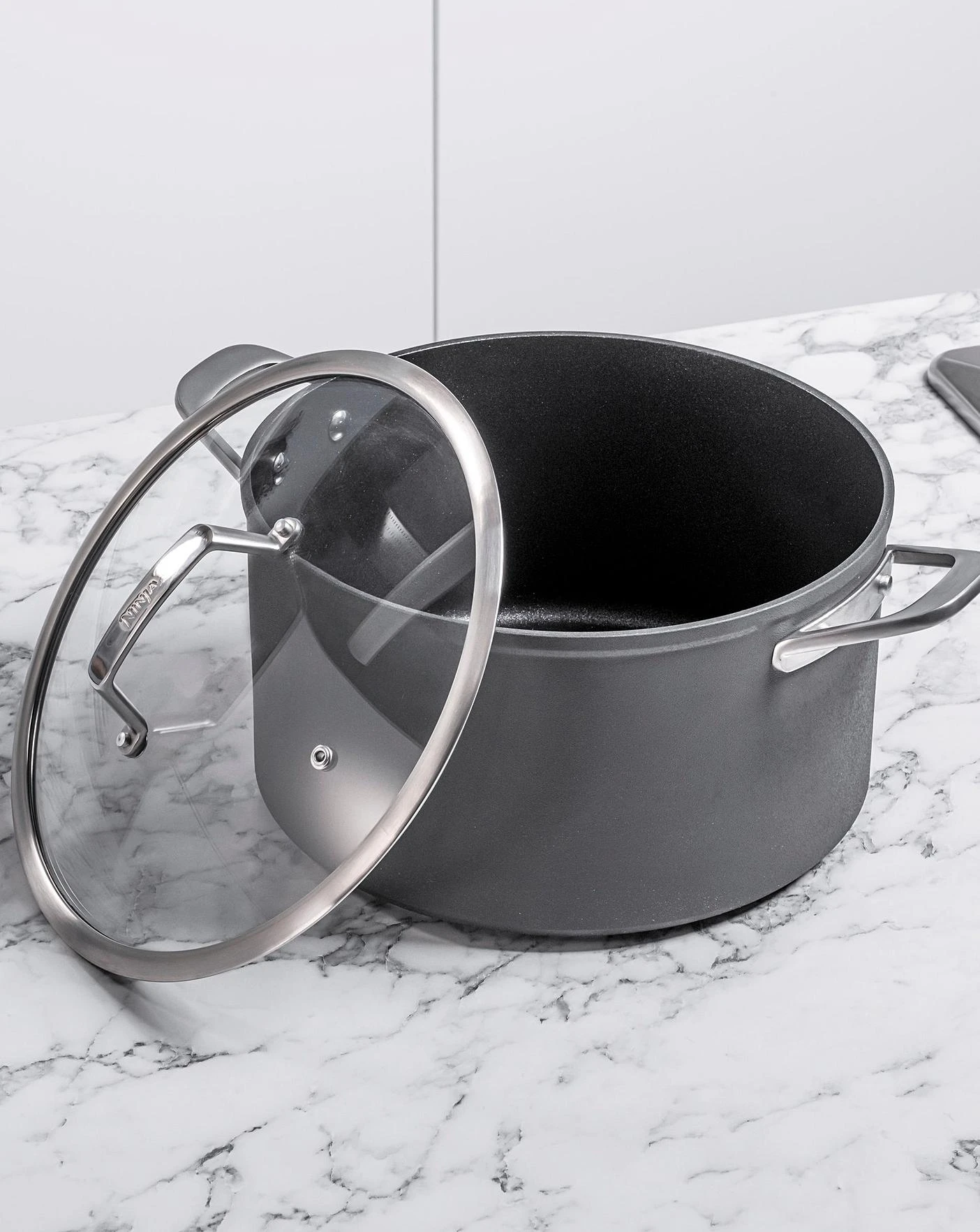 Why settle for non stick when you can have ZEROSTICK? Whereas other pans can rapidly lose their non-stick performance, Ninja ZEROSTICK is up to 20x tougher than traditional non stick, tested to withstand 10,000 scrubs. Durable and long lasting, it is metal utensil safe, scratch resistant and dishwasher safe for easy cleaning. Covered by the Ninja 10 Year Replacement Guarantee, including the ZEROSTICK coating, so you can cook with confidence.Built to last from forged aluminium with a hard anodised exterior, this stock pot features a comfortable cast stainless steel handle and oven safe tempered glass lid with a thick stainless steel rim. It is suitable for all hob types, including induction, and oven safe to 260 degrees C, so you can start your creation on the hob before finishing it to perfection in the oven. Cook using little to no oil, ZEROSTICK stops food from sticking day after day, so your creations easily slide from the pan to your plate. Designed to withstand high heat cooking, the heavy gauge aluminium ensures even heating and no hot spots for consistent results. PFOA, lead and cadmium free.