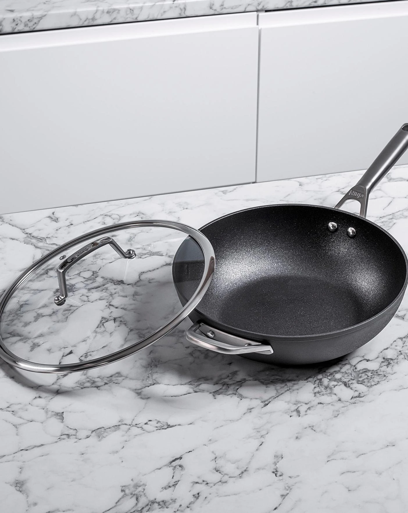 Durable and long lasting, it is metal utensil safe, scratch resistant and dishwasher safe for easy cleaning. Covered by the Ninja 10 Year Replacement Guarantee, including the ZEROSTICK coating, so you can cook with confidence.Built to last from forged aluminium with a hard anodised exterior, this versatile wok features a comfortable cast stainless steel handle and oven safe tempered glass lid with a thick stainless steel rim. It is suitable for all hob types, including induction, and oven safe to 260 degrees C, so you can start your creation on the hob before finishing it to perfection in the oven. PFOA, lead and cadmium free.