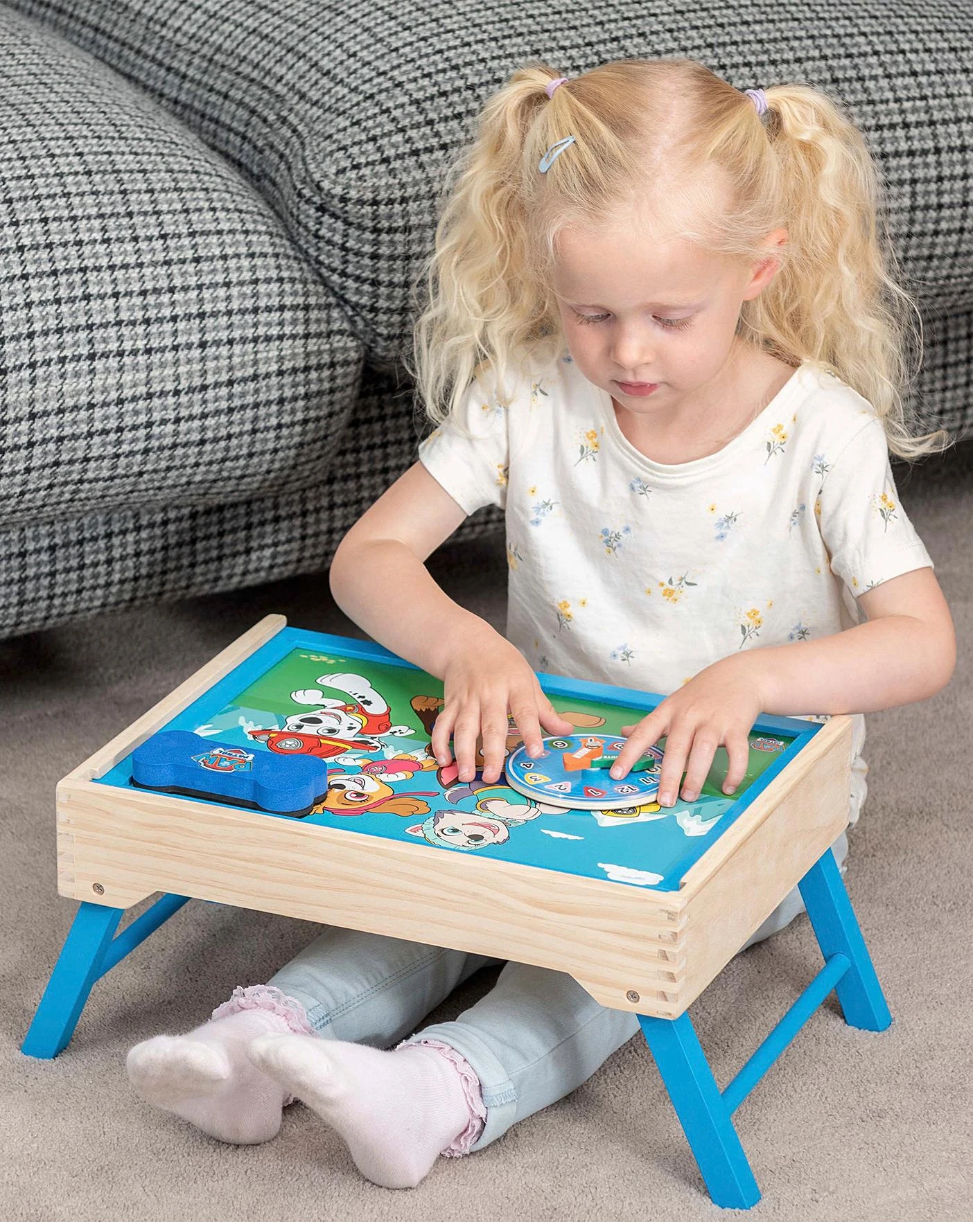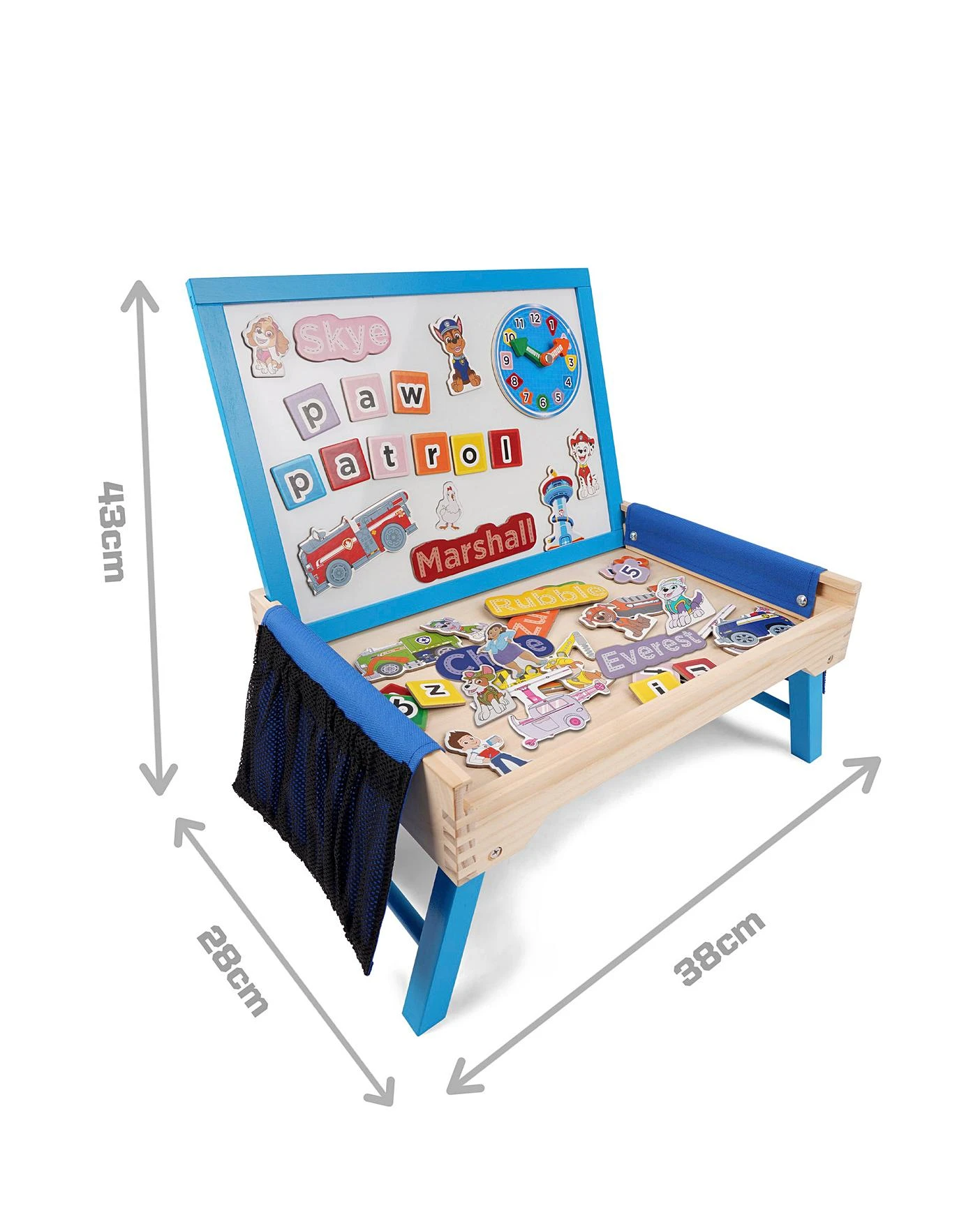 Make learning fun with this Paw Patrol Creation Station! Counting, colouring, spelling, time-telling and drawing are examples of what your Paw-Patrol loving little one will spend hours enjoying. With 92 magnets, boasting both educational and creative features, children can develop numeracy and literacy skills or create their own Paw Patrol scenes with their favourite characters and vehicles. With a removeable whiteboard lid, children can draw on the 4 activity sheets included. Not only this but the tray’s folding legs accommodate them on the go whether it’s for entertainment on a long journey or to use in their bedroom. The canvas pockets are also handy to store all the magnets away.