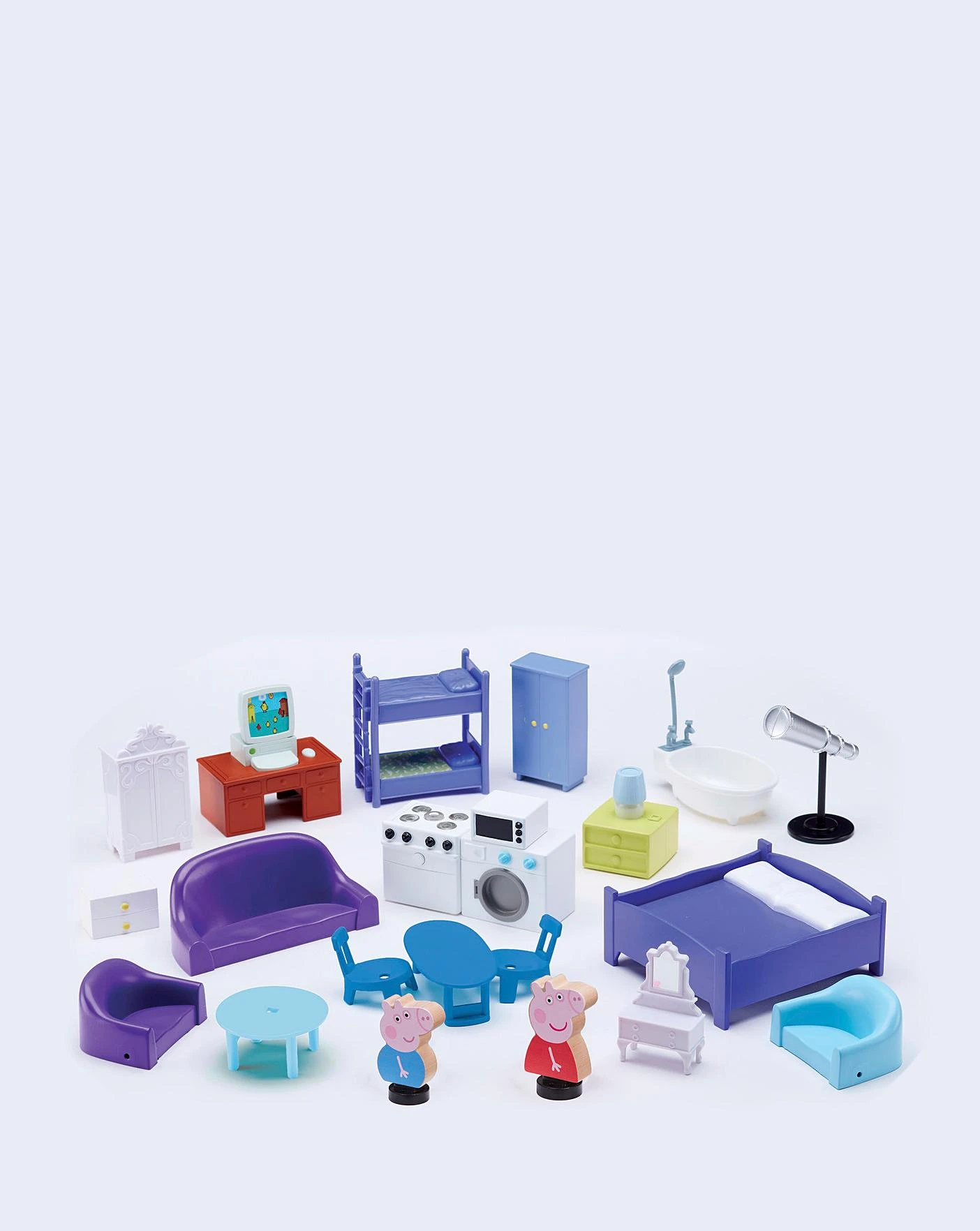 Includes Peppa and George wooden figures. Mummy and Daddy Pig are sold separately.