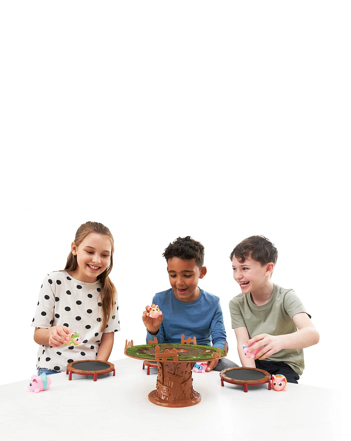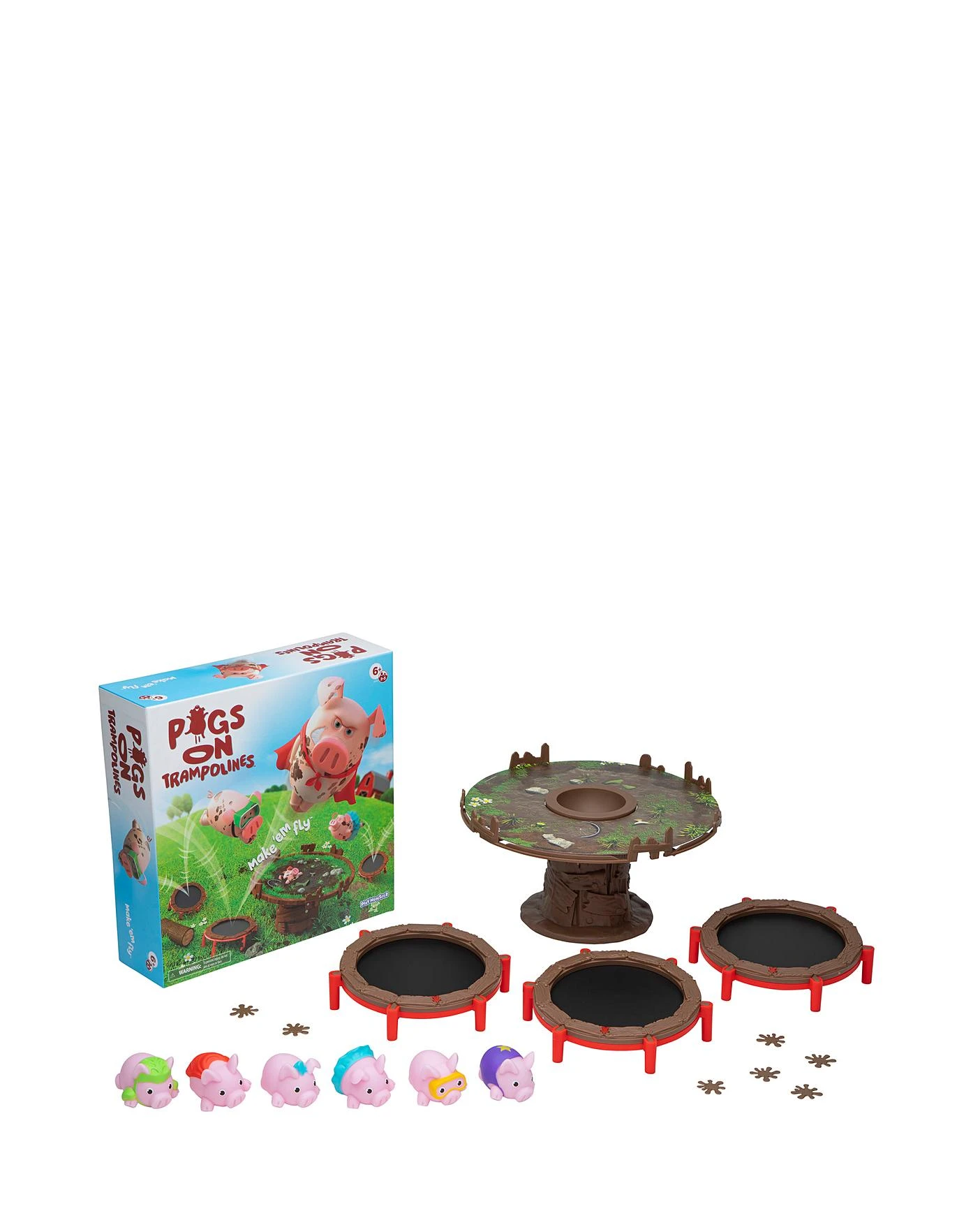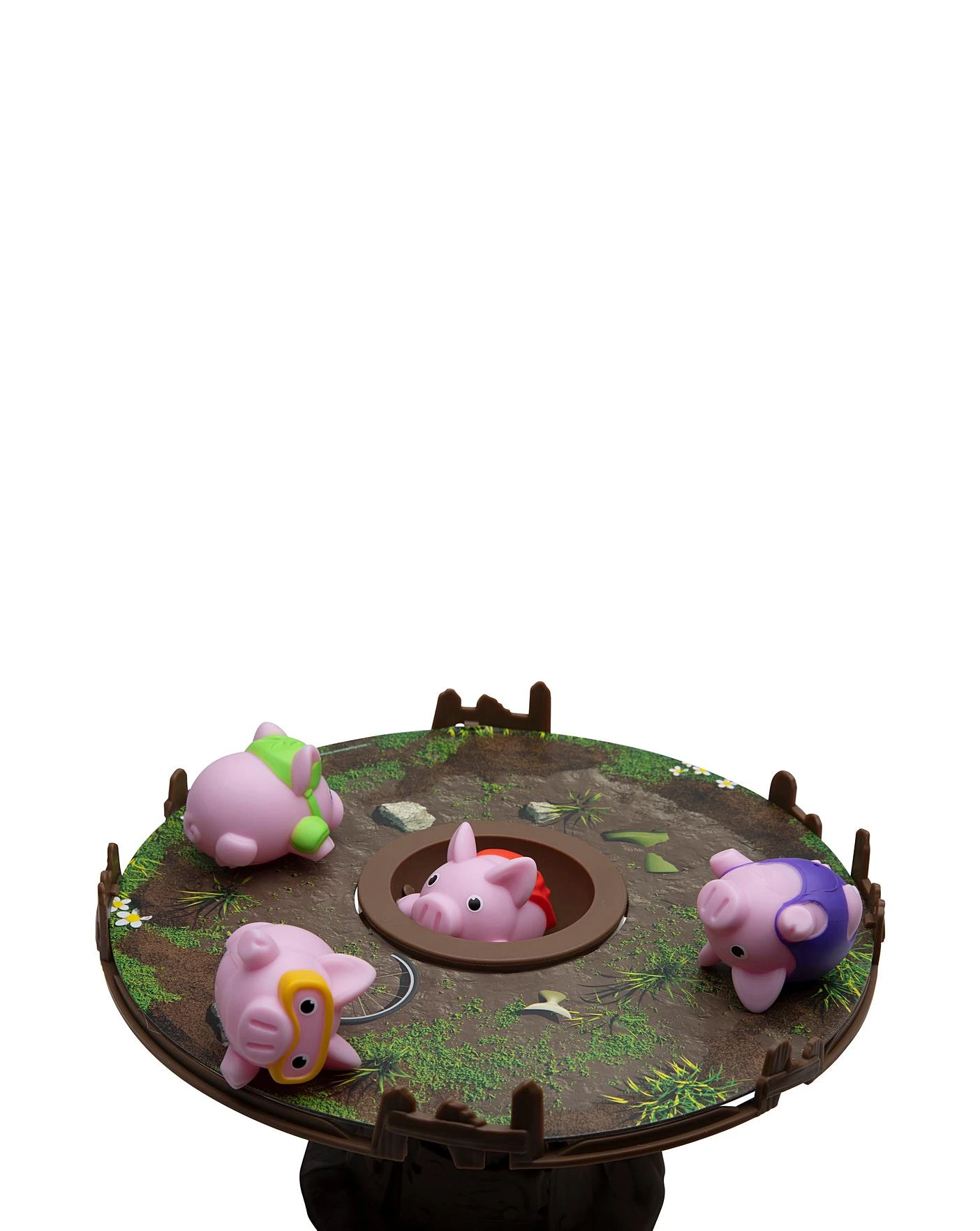 Yippeee! Jump for joy with Pigs on Trampolines! Use the trampolines to bounce your pigs into the pig pen and try to land in the mud puddle! Every pig you land in the puddle earns you a mud pie. Keep on bouncing your pigs until all the mud pies are gone – the muddiest piggy wins! Make ’em fly! For 2-3 players.