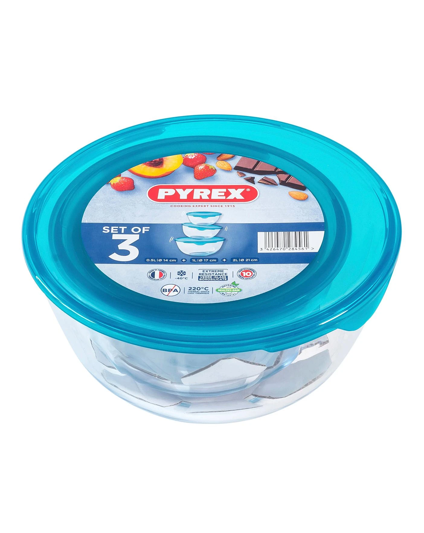 Pyrex Prep & Store bowls with lids offer all the great benefits of Pyrex bowls and can keep food preserved for storage in the fridge or freezer. Perfect for storing food or serving directly to the table. The lid features a handy writing space to record food contents with a pencil, so it can be used time and time again.