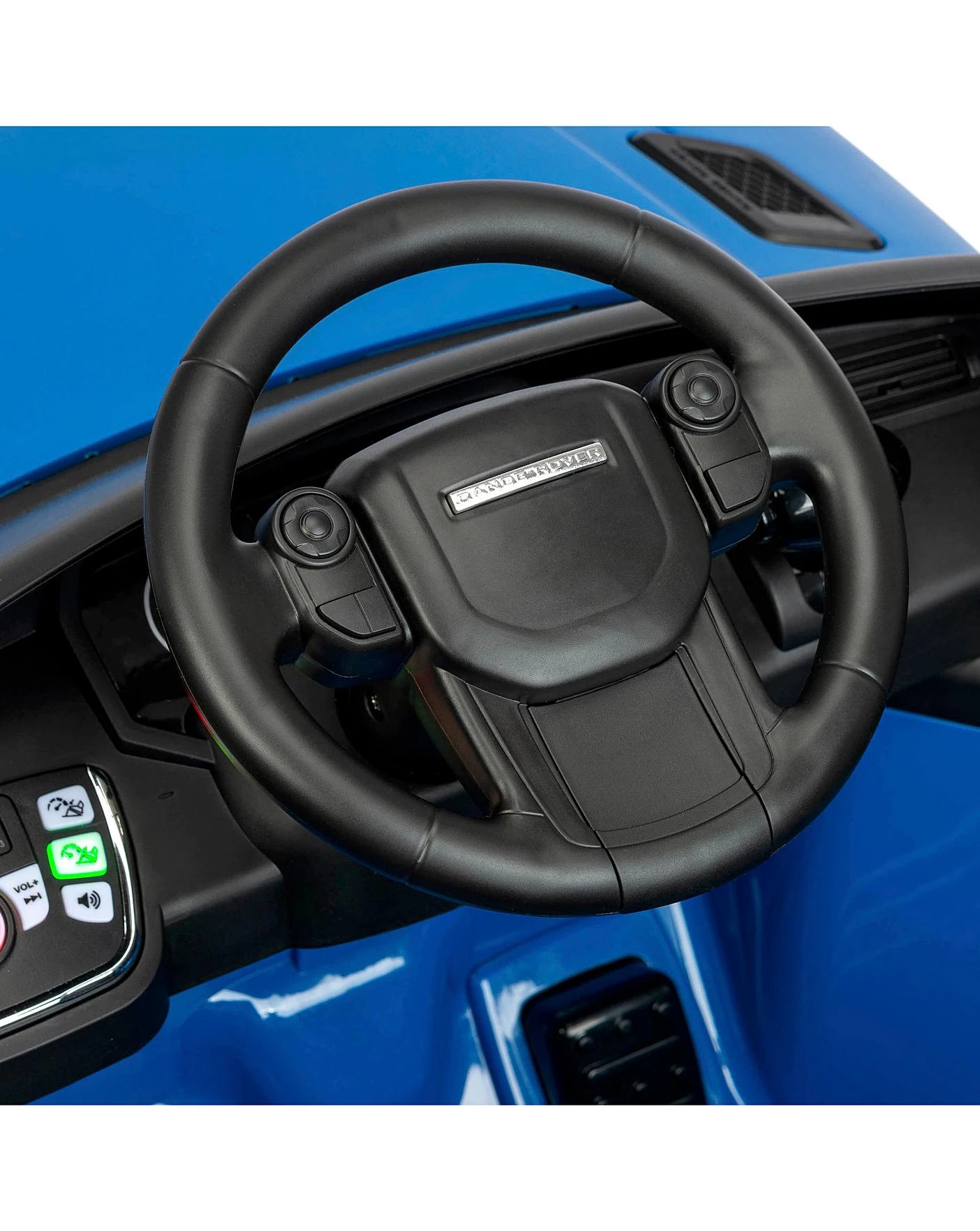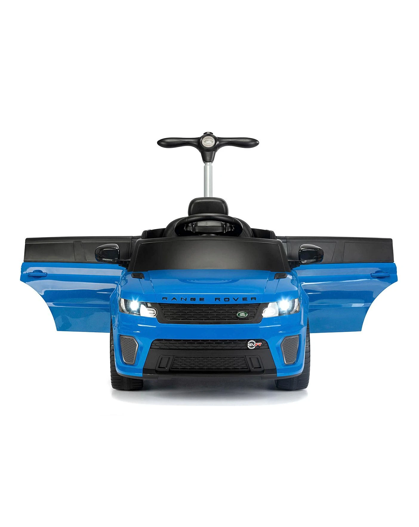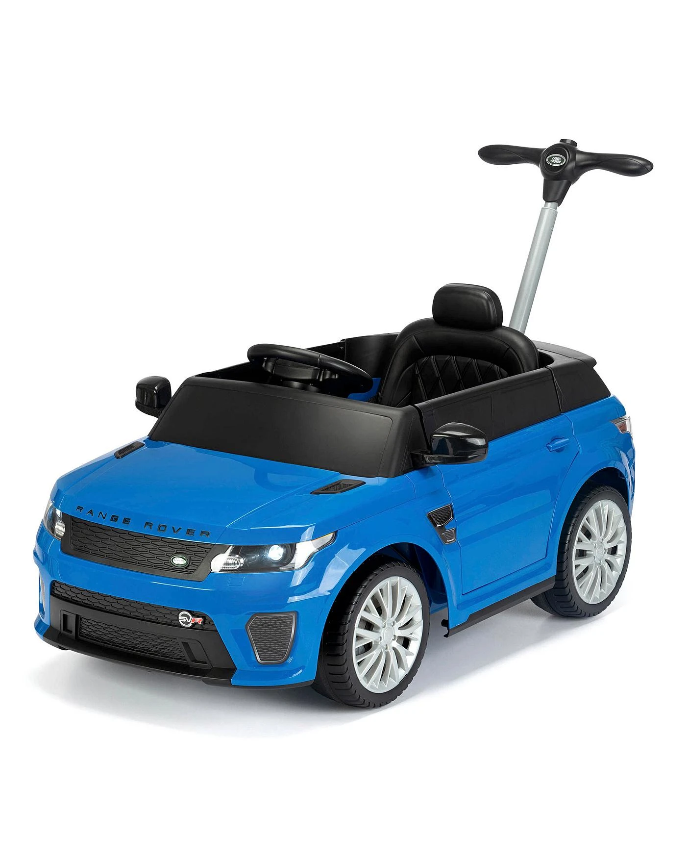 Range Rover 6V Ride On/Push Car – Blue. The officially licensed Range Rover SVR Electric Ride-On/Push Car is ideal for car mad kids to enjoy an authentic driving experience in their very own car. The Range Rover SVR combines stylish SUV styling and amazing performance, and now kids can get in on the act. All kids will love driving their own electric ride-on Range Rover. It is ideal for making trips to the park or around town that bit more exciting. It is also ideal for younger kids as the car features a push handle, for extra control and safety until kids get the hang of driving the car for themselves. The included 16V rechargeable battery gives a powerful and fun, but safe top speed of 2.7km/hour, controlled by kids themselves with a foot accelerator pedal. It will power the car for 1½-2 hours on one charge (depending on terrain). The car can go forward and backwards, has working front headlights, a power indicator and opening doors. You can even plug in a MP3 player to play your favourite music as you drive along.