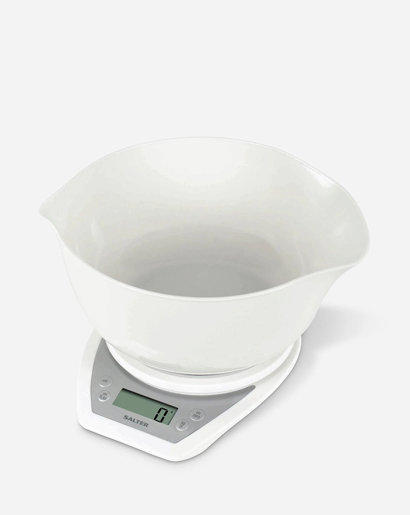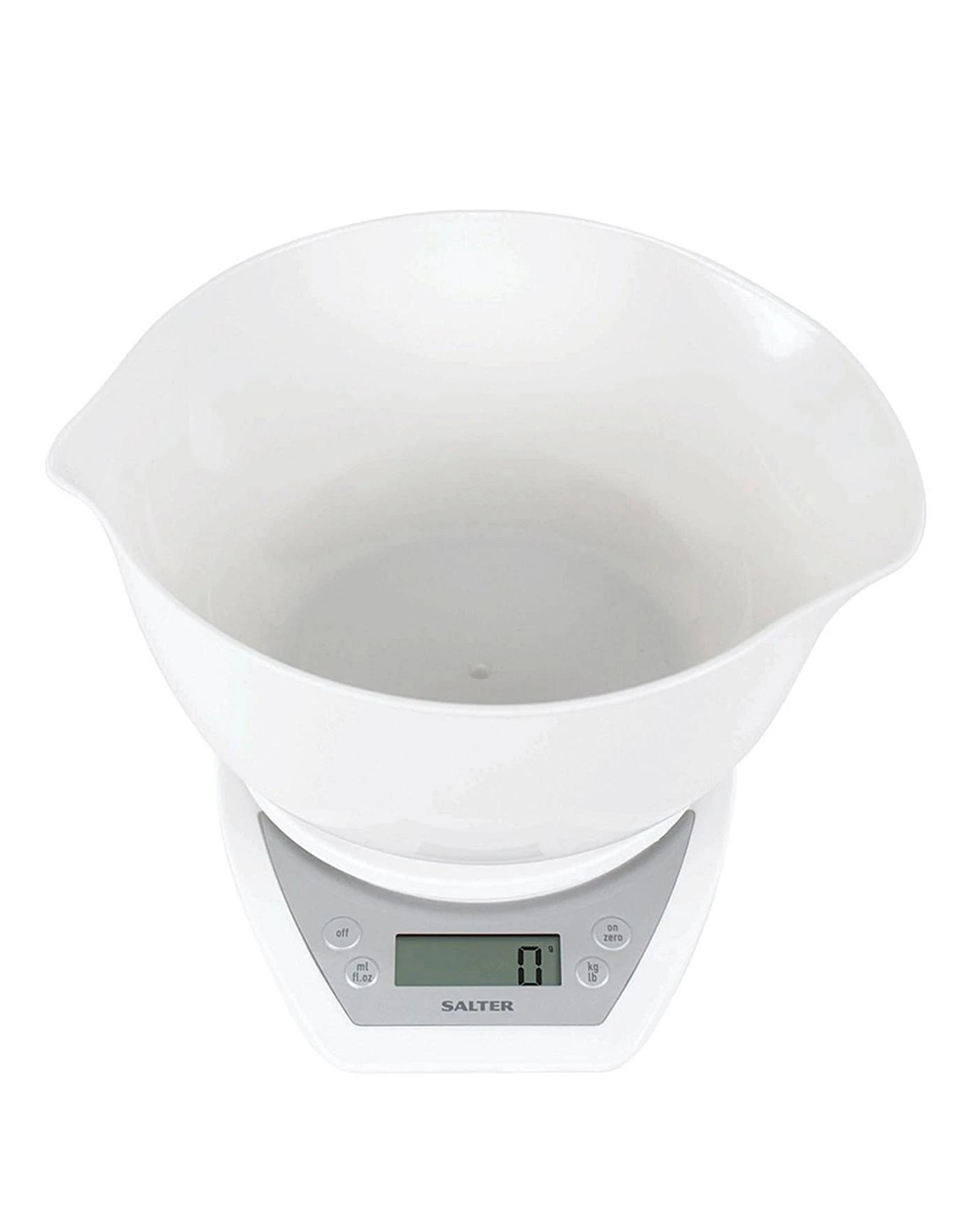 Make baking quick, easy and enjoyable thanks to the innovative Dual Pour Kitchen Scale with Mixing Bowl from Salter, perfect for holding up to two litres at a time, the bowl has two spouts to accurately pour in both wet and dry ingredients. These handy kitchen scales can weigh ingredients up to five litres and the easy read LCD display is perfect for accurate measurements in metric or imperial.