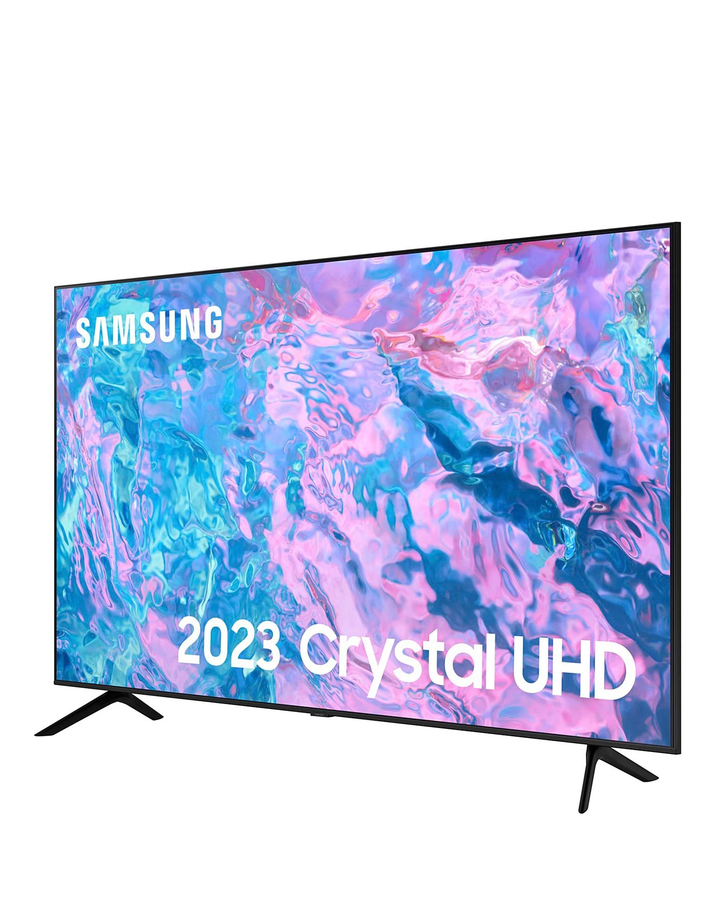 There is a €5 charge included in the cost of this product as part of the WEEE disposal regulations 2014. Simply relax and enjoy the content you love whilst the TV boosts the quality to 4K detail and adjusts the sound depending on what’s playing. Samsung’s PurColour improves the quality of any image, uncovers hidden details, and helps show your content’s true colours. Object Tracking Sound Lite chooses which of the TVs front speakers the sound comes through depending on where the action is happening on screen. Samsung Gaming Hub brings together the biggest console and streaming games from Xbox and other industry-leading partners, all in on one place. With no downloads, storage limits or console required, just turn on your TV and play. Internet connection, additional gaming service subscription and compatible controller required (compatible controller required). Gaming Hub not available in Republic of Ireland. Dive into a huge collection of 4K films, TV shows, and all your catch-up TV apps all in one place. Our easy-to-use and customisable Smart Hub platform gives you tailored recommendations. Subscriptions required. Some apps may not be available at launch. 3rd party content providers may remove apps from the Smart TV platform or stop updating them at any time.