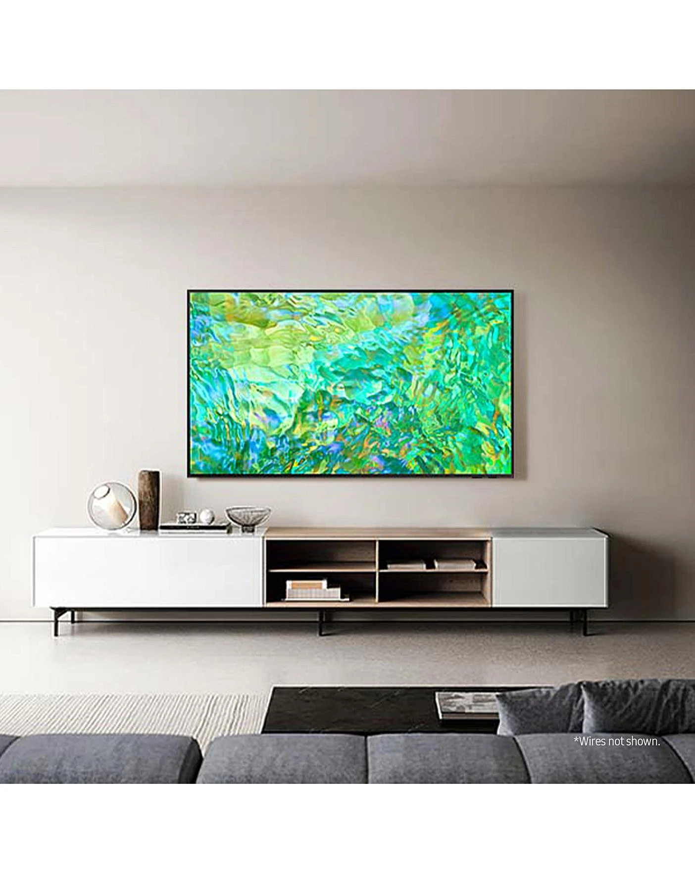 There is a €5 charge included in the cost of this product as part of the WEEE disposal regulations 2014. Dynamic Crystal Colour delivers rich and vibrant images in over one billion shades – 64 times more than conventional UHD TVs. Object Tracking Sound Lite chooses which of the TVs front speakers the sound comes through depending on where the action is happening on screen. You don’t just want your TV to look good when it’s on – you want it to blend into your room when it’s off too. This TV has a slim design with a clean cable solution, so it will look stunning from any angle. Simply relax and enjoy the content you love whilst the TV boosts the quality to 4K detail and adjusts the sound depending on what’s playing. Samsung Gaming Hub brings together the biggest console and streaming games from Xbox and other industry-leading partners, all in on one place. With no downloads, storage limits or console required, just turn on your TV and play. Internet connection, additional gaming service subscription and compatible controller required (compatible controller required). Gaming Hub not available in Republic of Ireland.