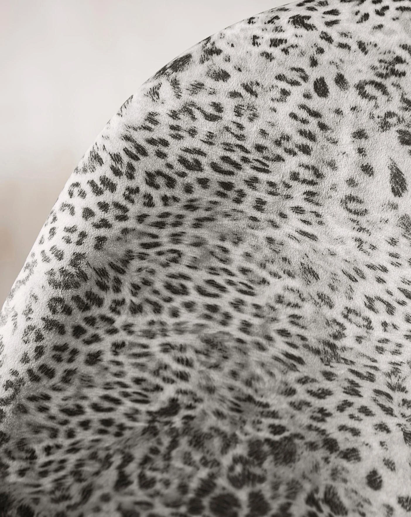 The Savannah Pair of Dining Chairs are stylishly designed and will make a strong impact in your dining room. Upholstered in a bold leopard print fabric that is velvet-like and soft-to-touch, with long black wooden legs, the Savannah Pair of Dining Chairs are perfect for any modern home.