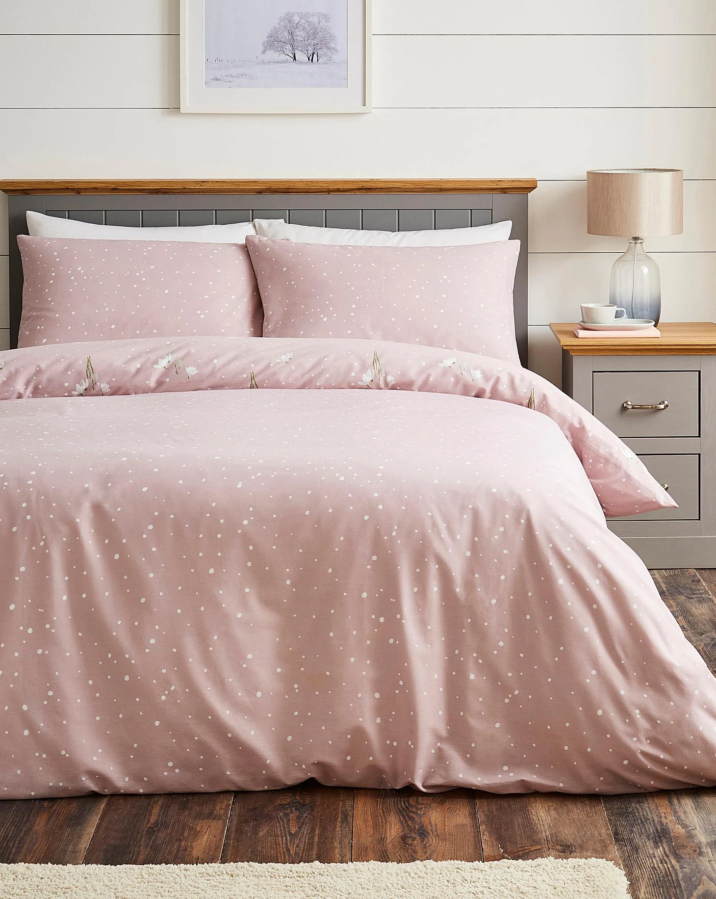 Add a festive touch to your bedroom with this all over snow print design. Featuring a scattered floral print that adds a feminine touch.