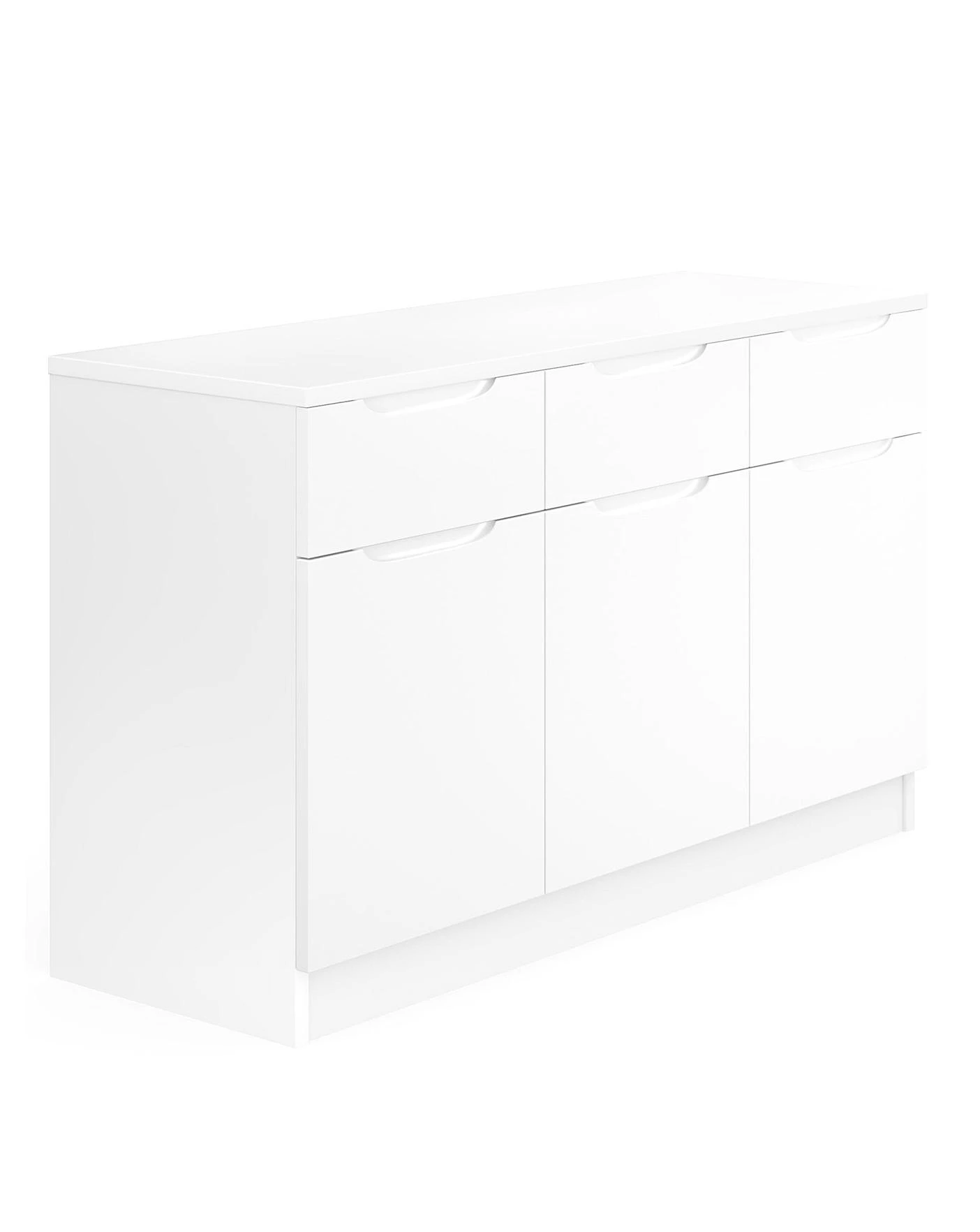 The Sorrento High Gloss Large Sideboard is part of the stunning Sorrento living range, ideal to sit beautifully in modern and contemporary homes. Characterised by its shiny, high-gloss finish and a handle-free look with inset handles, this range comes with the added benefit of being fully assembled. Features plenty of storage space behind the doors with removable internal shelves , along with three drawers with a heavy duty 8mm base sat on easy-glide metal runners for additional storage.