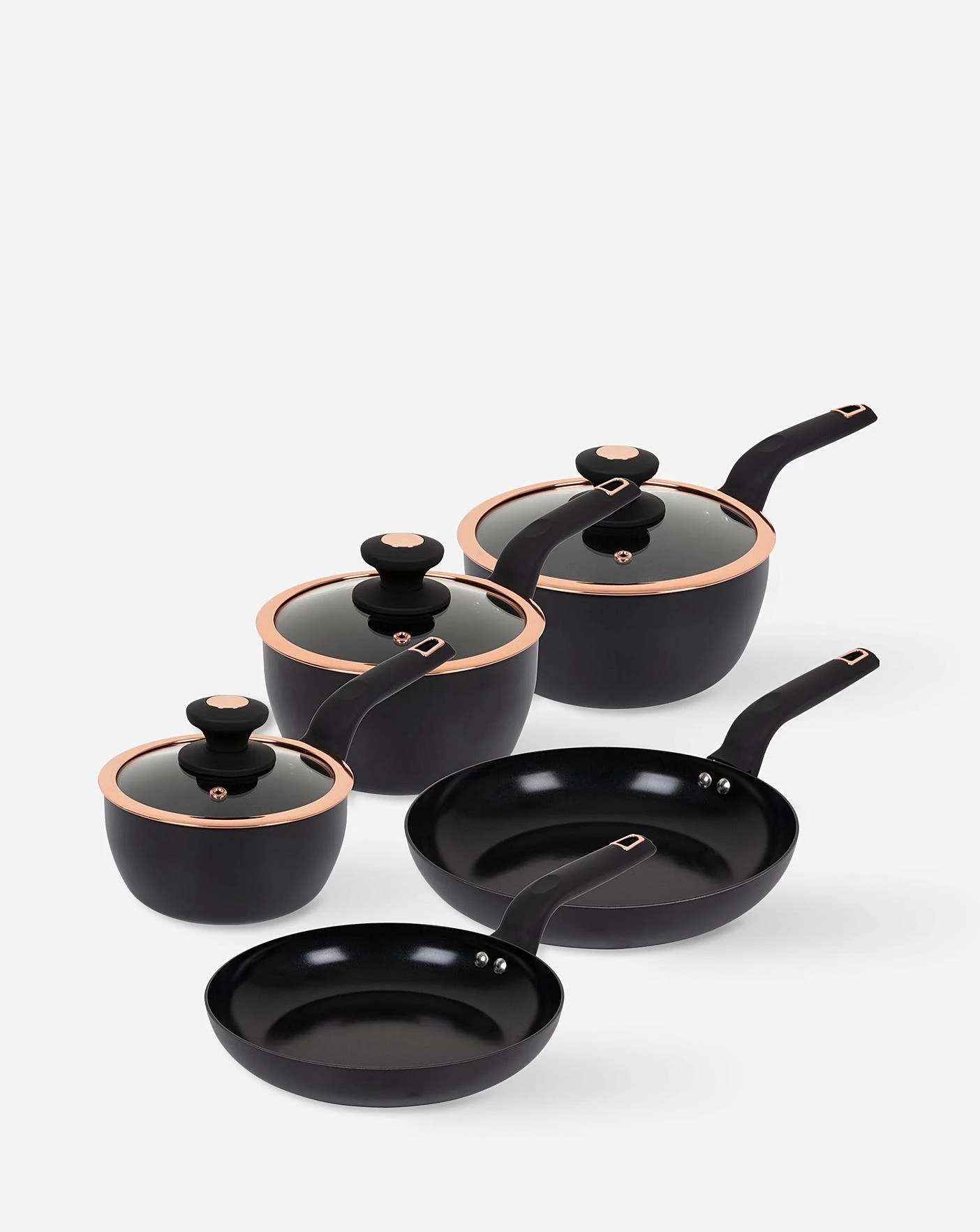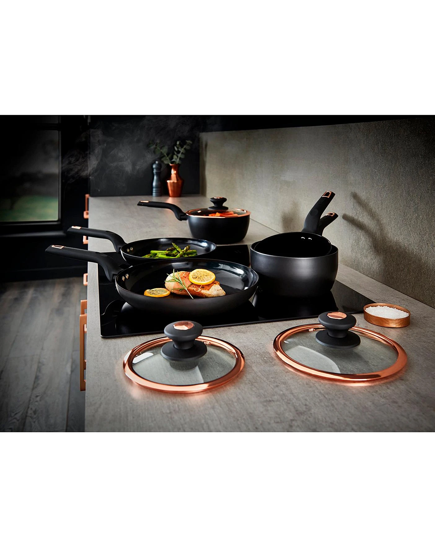 Consists of 16/18/20cm saucepans with 24/28cm non-stick frying pans – Constructed from high quality pressed aluminium – Non-stick Cerasure ceramic coated interior – Heat resistant colour matching exterior – Colour matching soft touch bakelite handle with hanging loop – Bonded steel base for even heat distribution – Suitable for all hob types including induction
