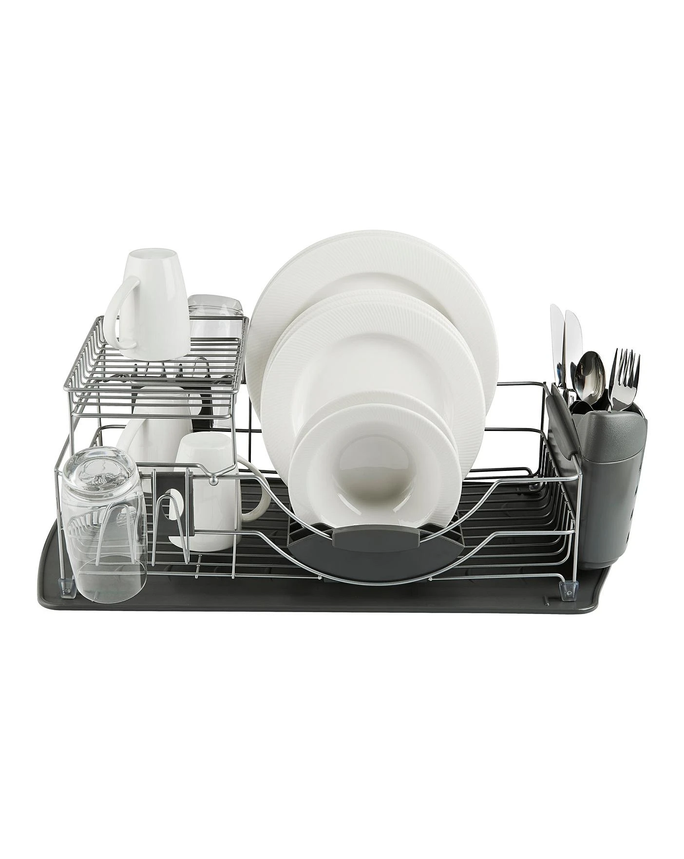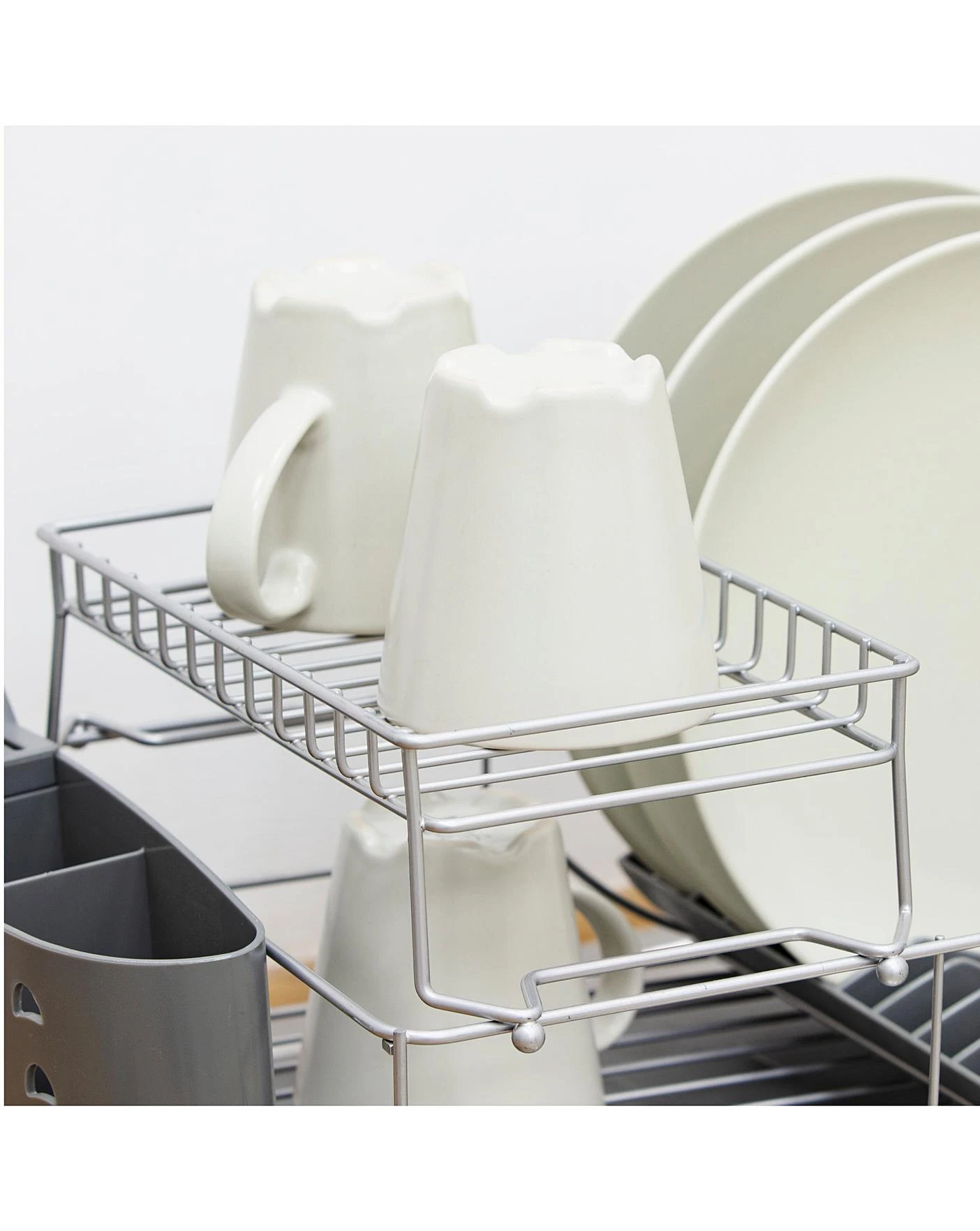 Make the most of your worktop space by combining both quality and style with this compact 2-tier dish rack. The draining tray’s raised ribs keep your items elevated during drying, so excess water can be drained away easily. Both the draining tray and cutlery holder are fully detachable for the added benefit of a compact and tidy storage.